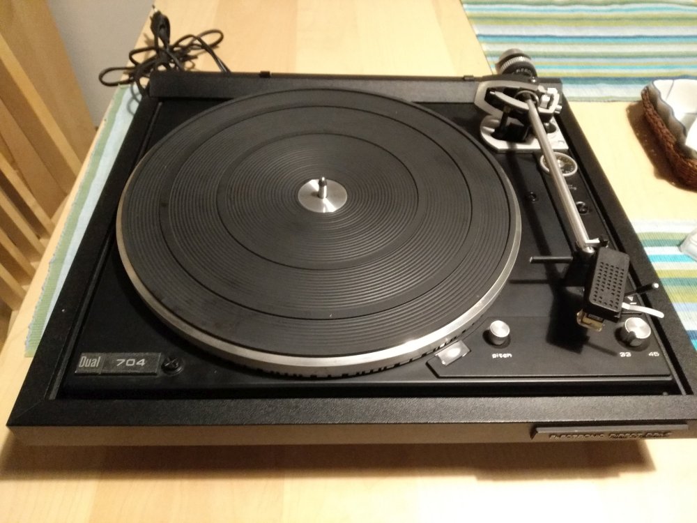 Pierwsze wrażenia tylko optyczne i mechaniczne bo jeszcze kabli nie wymieniłem. No co tu dużo mówić solidna niemiecka robota. Widać, że wyższa klasa niż 1237. Obroty trzyma ale pewnie i tak powymieniam elektrolity. Wizualnie stan bdb-, na pokrywie jedna głębsza rysa chyba nie do spolerowania, poza tym cała. Pomoc nastawy nad rozbiegówkę płyty dla 7" działa dla 12" słabo wyczuwalna. Trzeba będzie zajrzeć pod spód ale tu jest znacznie mniej do roboty niż przy automatach. Tłumik rezonansów we właściwej pozycji. Ramię bardzo podobne do tego z 1237 ale widać, że dłuższe. No i to co mnie bardzo cieszy: regulacja VTA. Tależ solidny i wreszcie w rozmiarze płyt LP.