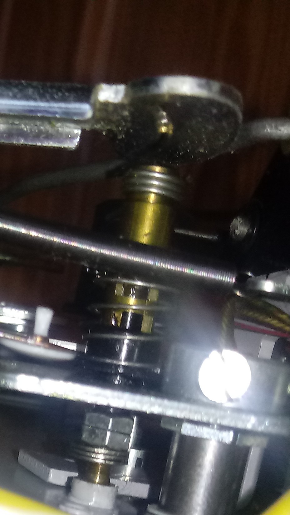 Ta nakrętka, którą wskazałeś, jest jakby przymalowana do wspornika i chyba nie do ruszenia, ale zastanawiają mnie nakrętki ze zdjęcia.