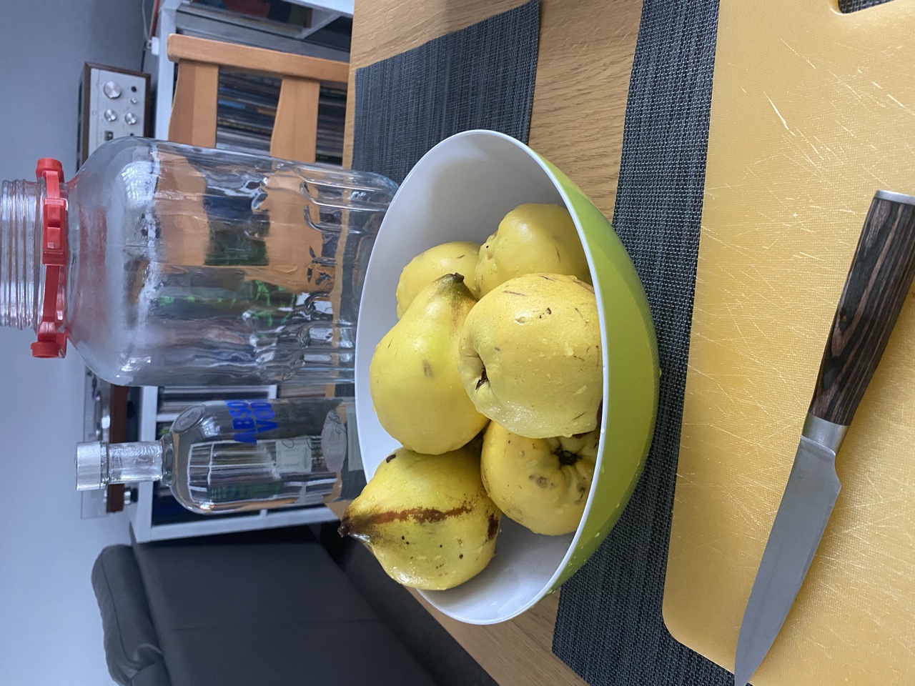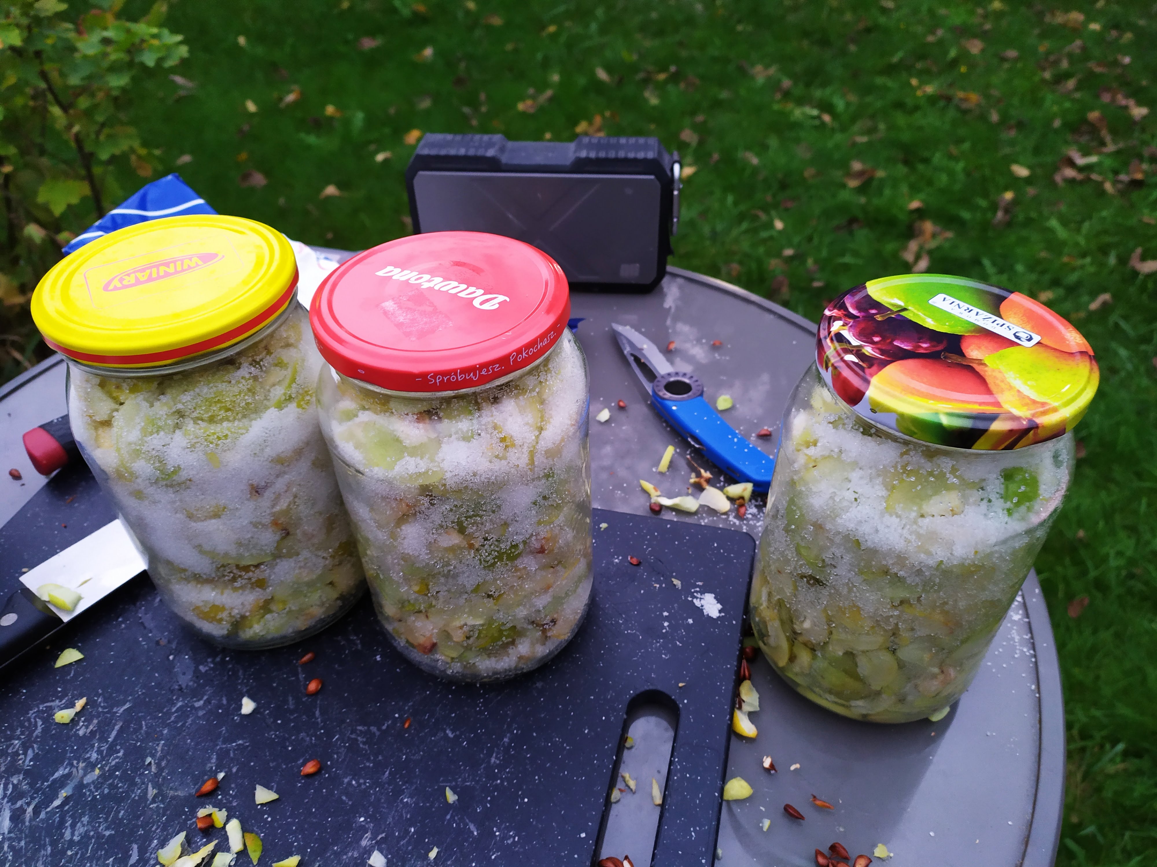 hej Simon, co prawda żaden ze mnie alkoholer ale proszę. Jadę z owoców pigwowca. 2 godzinki popołudniowego relaksu póki pogoda dopisuje. 3 słoiki, 2kg cukru. Teraz poleżą w lodówce. Na dniach dorobię resztę bo liczę na to że owoc pozostały na krzaku jeszcze trochę słońca złapie