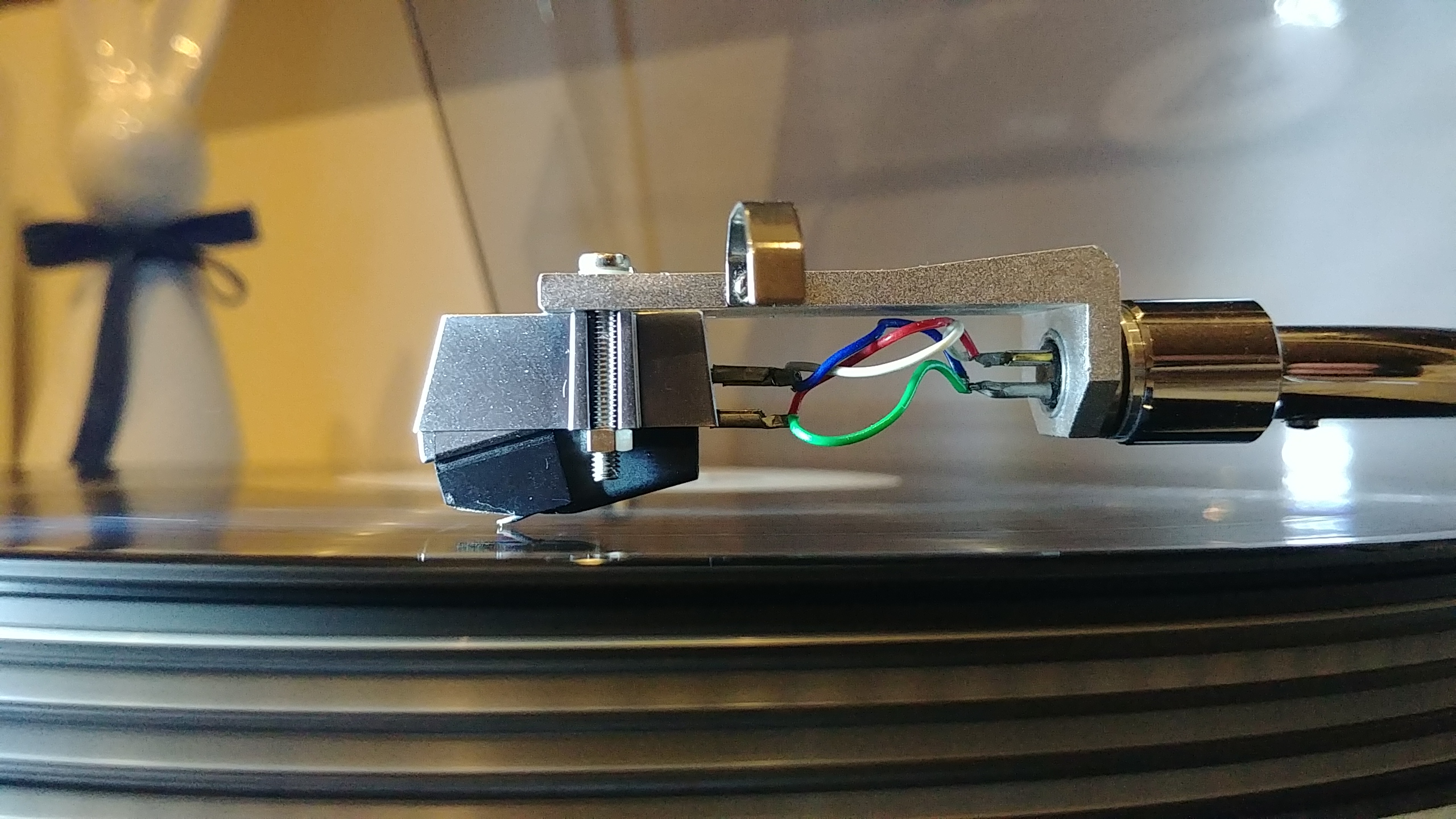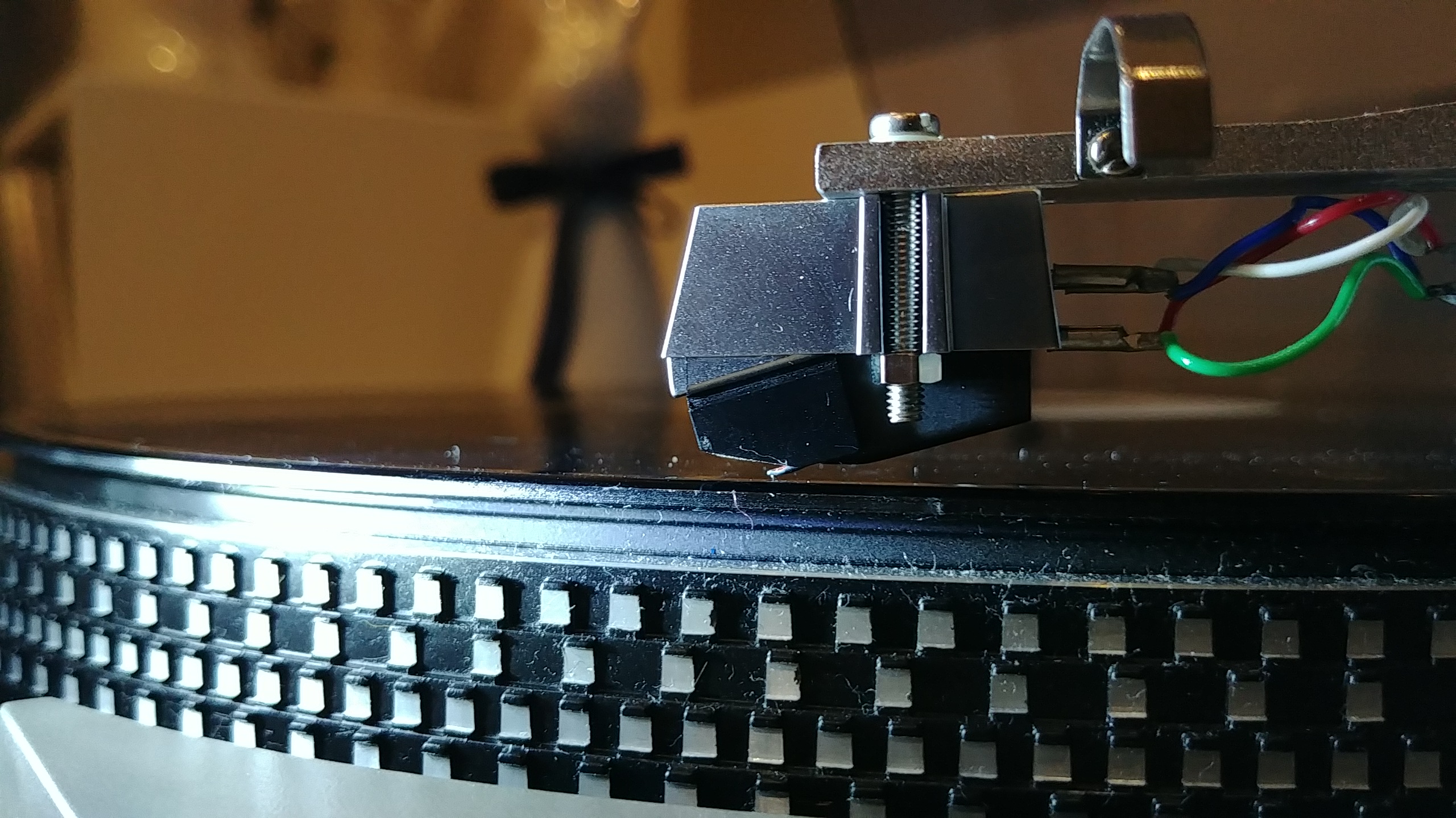 Ja bym wcisnął jakiś mały klin na tył wkładki (między dach, a headshell) żeby wyrównać nieco poziom