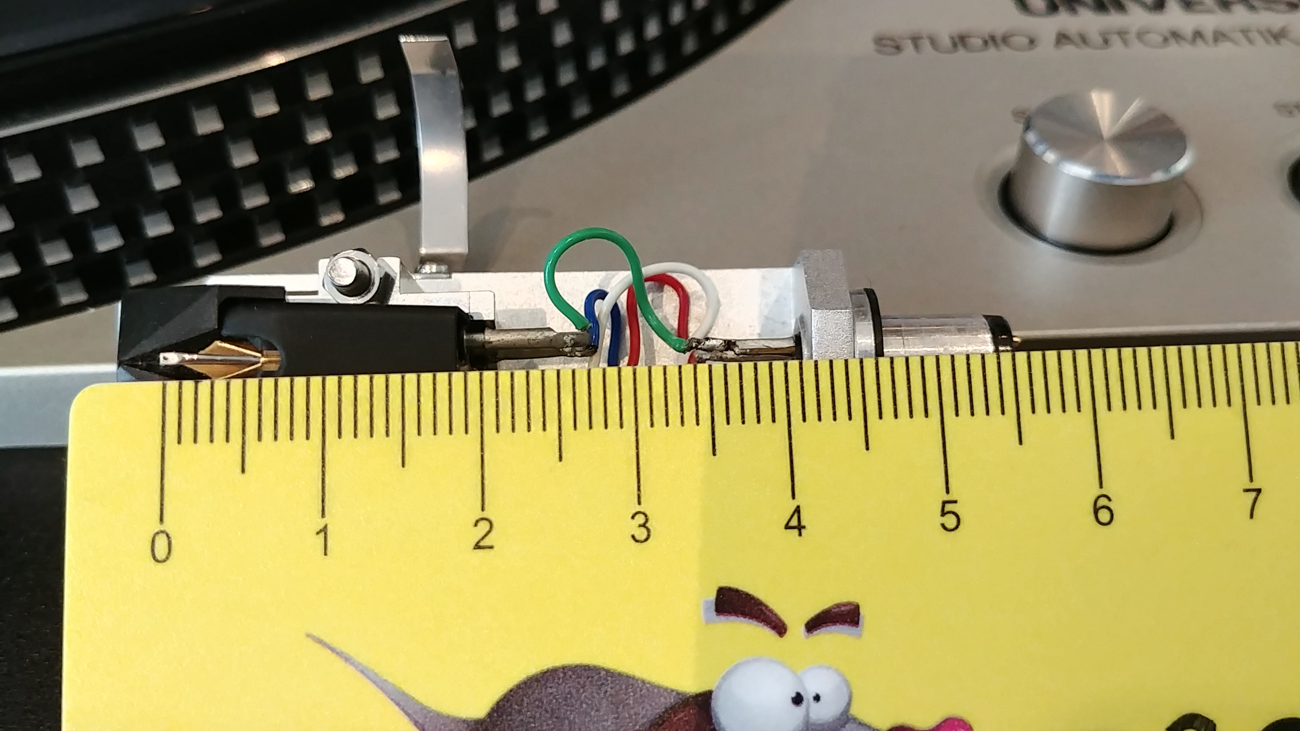 Fabrycznie ten gramofon miał inny headshell, z cofniętymi otworami. Jest on krótszy. Taki sam był montowany w Akai, Teac’ach i jeszcze wielu innych. Używam go, gdy przez nietypowe mocowanie wkładki brakuje mi paru mm.