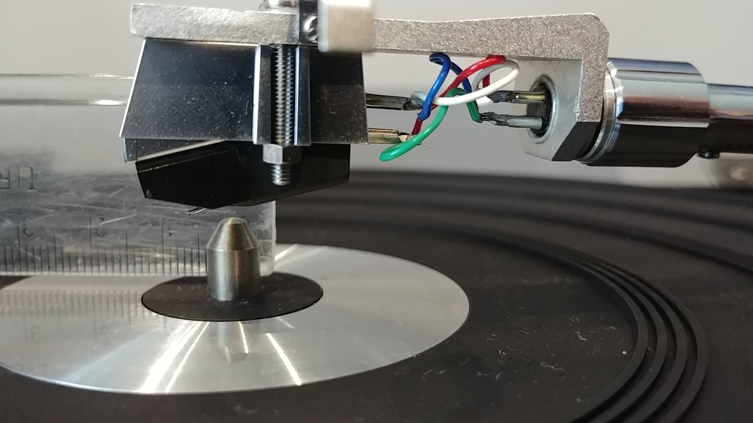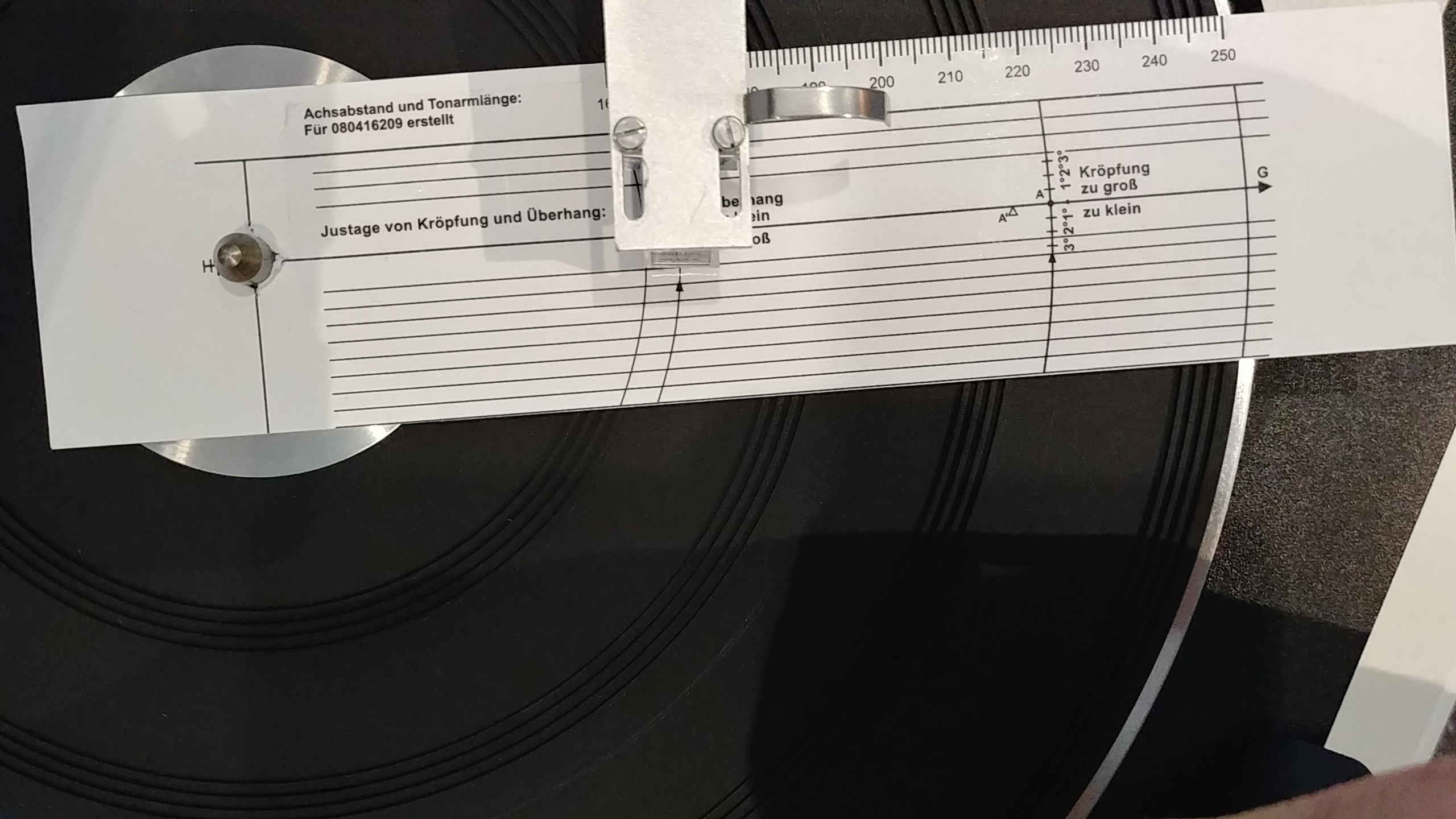 Moim zdaniem masz za długi headshell. Idei tego szablonu który używasz przyznam szczerze do dziś nie rozumiem. Żeby trafić w punkt musisz ten szablon przekręcić..