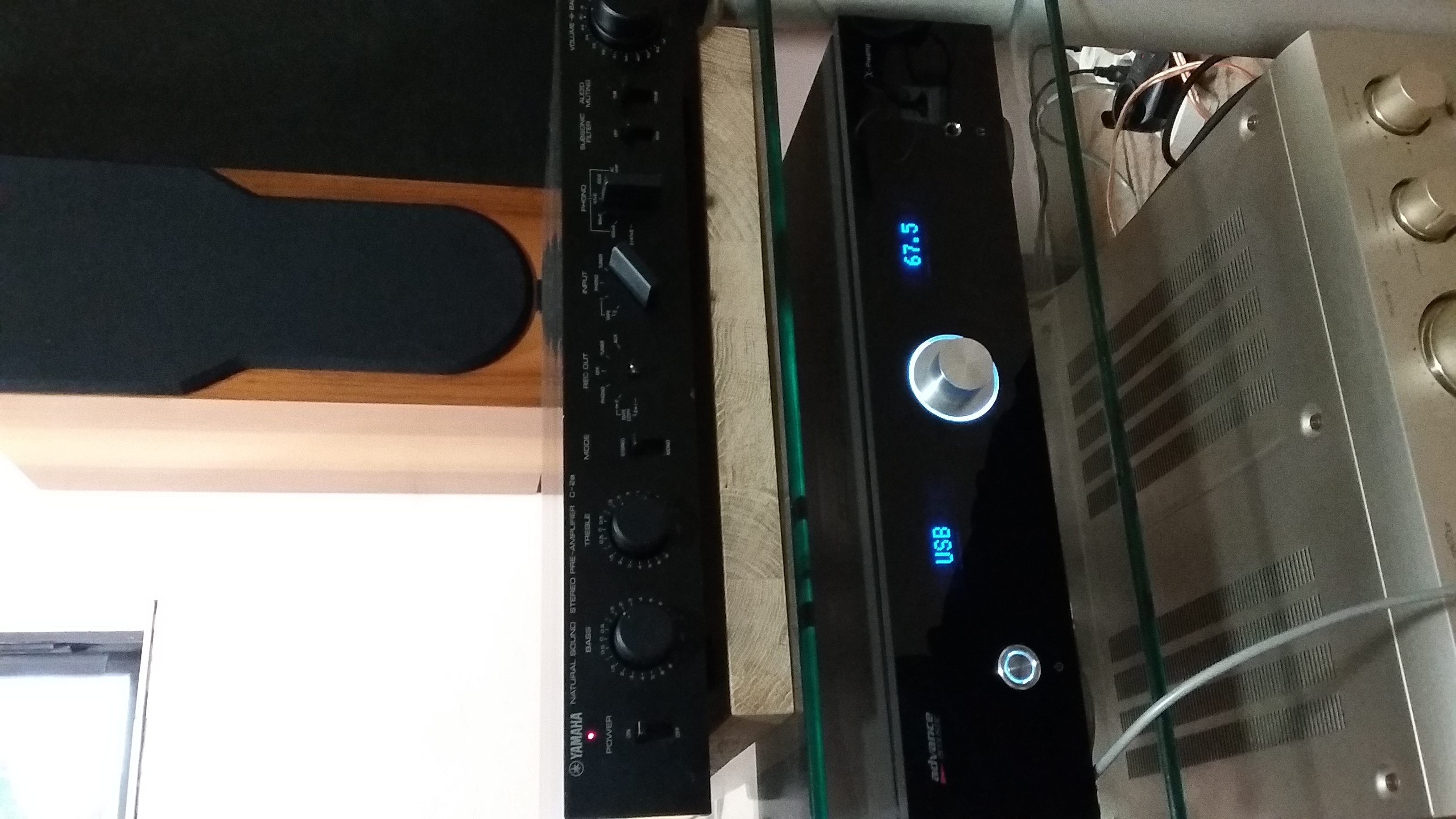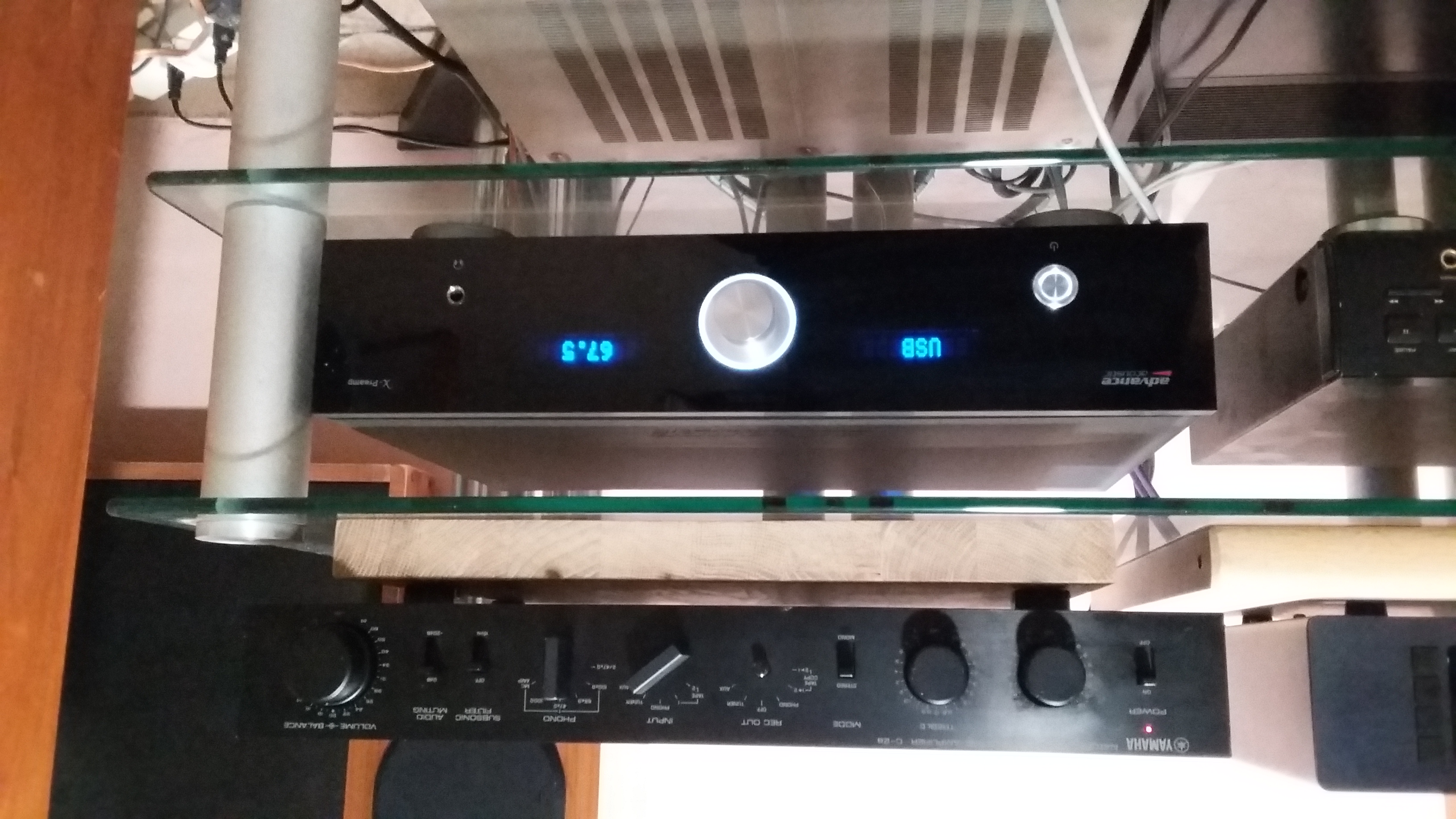 Po długiej nieobecności w moim zestwie, wrócił z serwisu pre Yamaha C2a. Doskonały pre obsługujący zarówno MM jak i MC. Na zdjeciu z drugim moim pre czyli Advance Acoustic X-pre.Myślę , że oba warte polecenia.