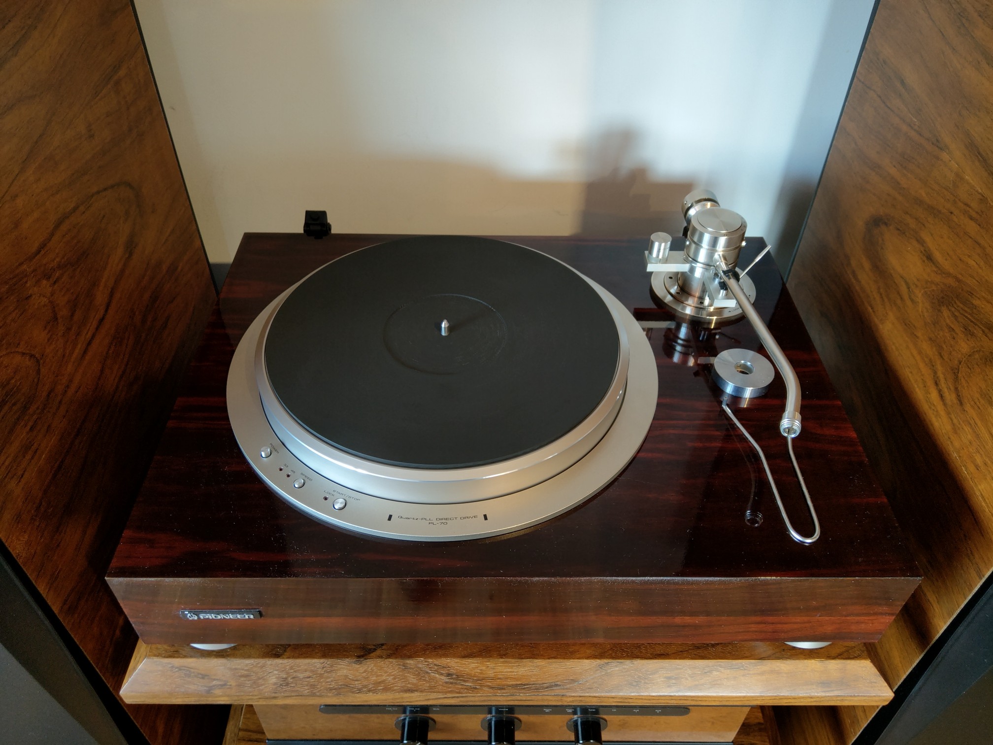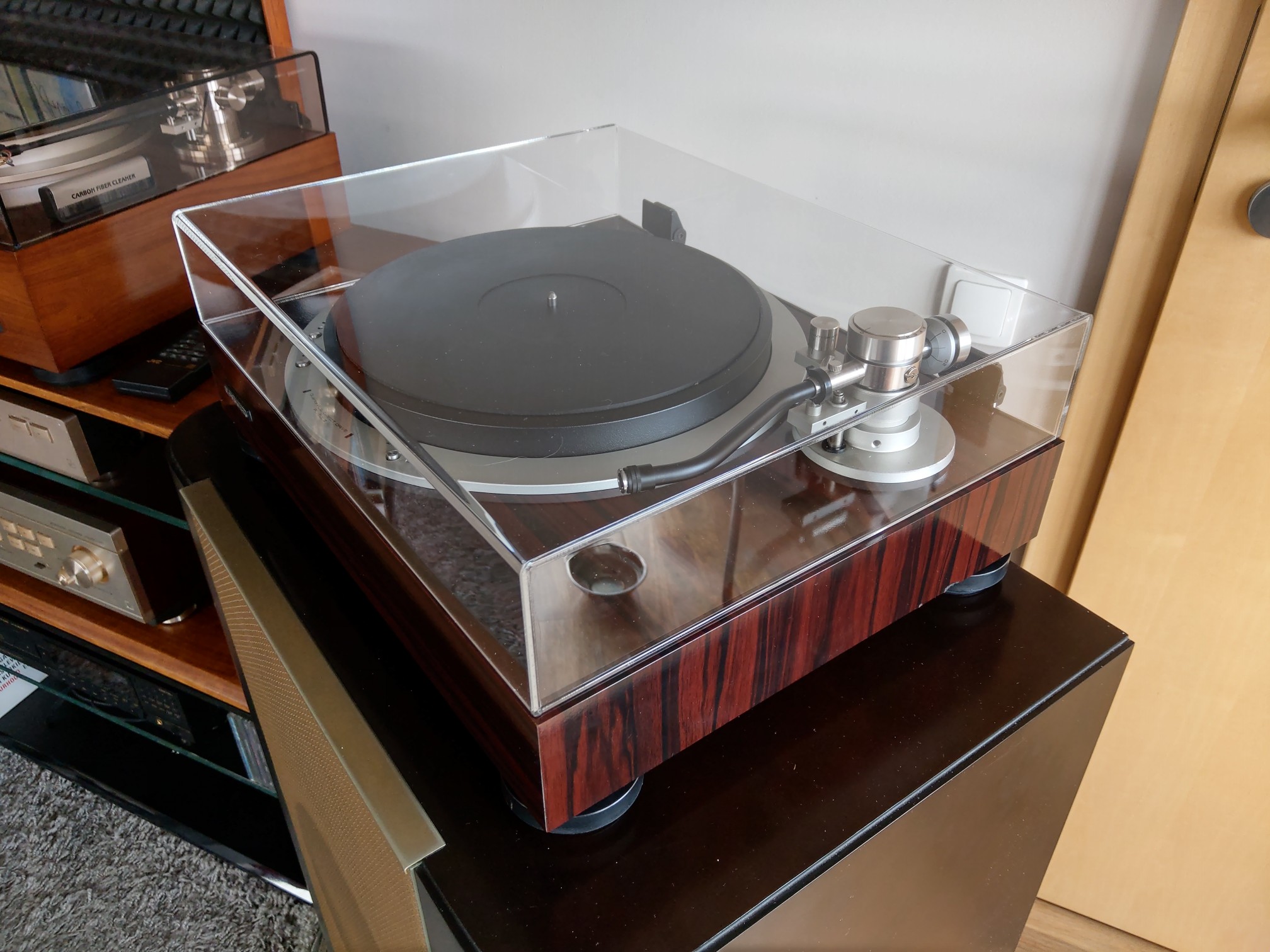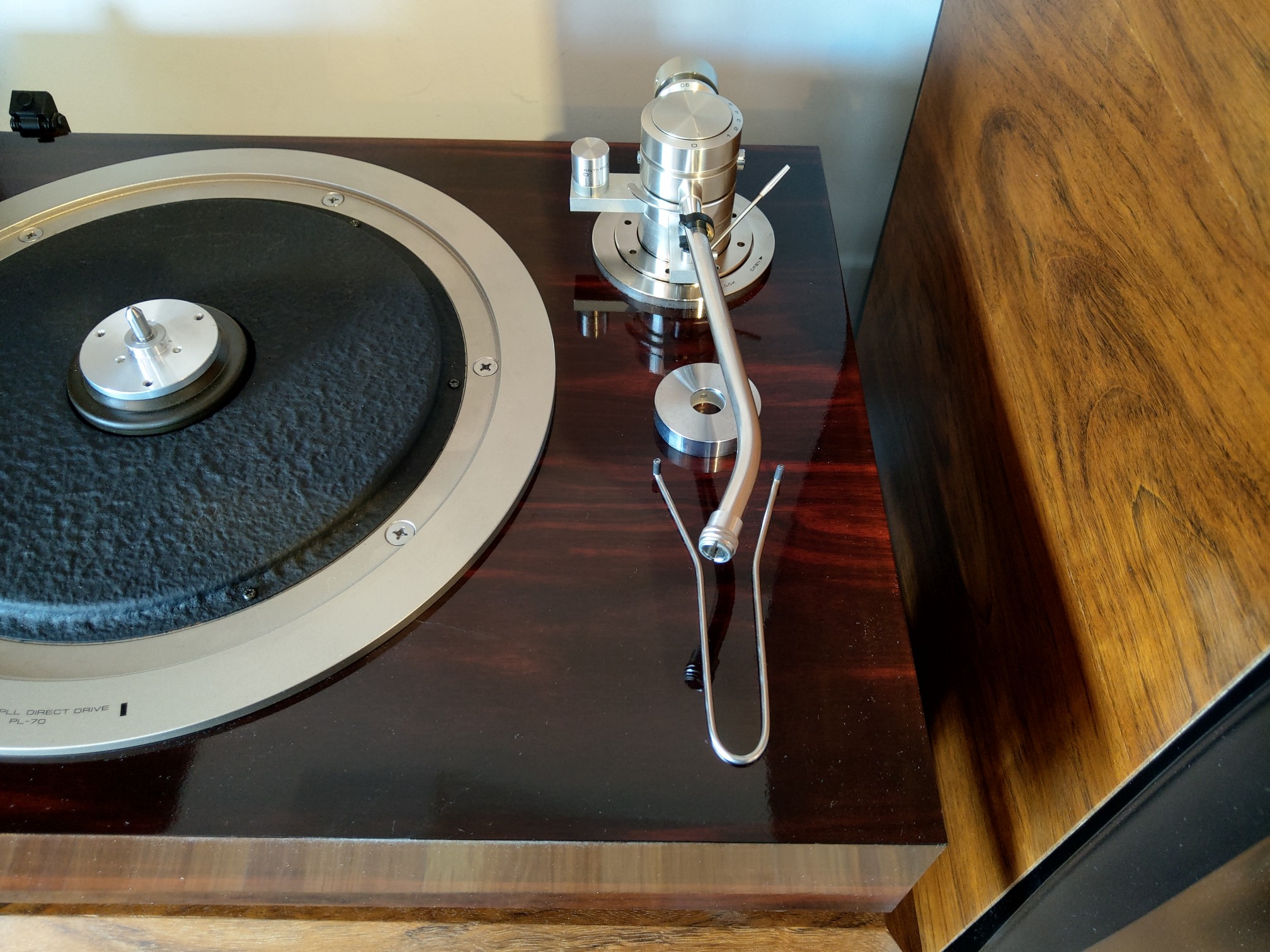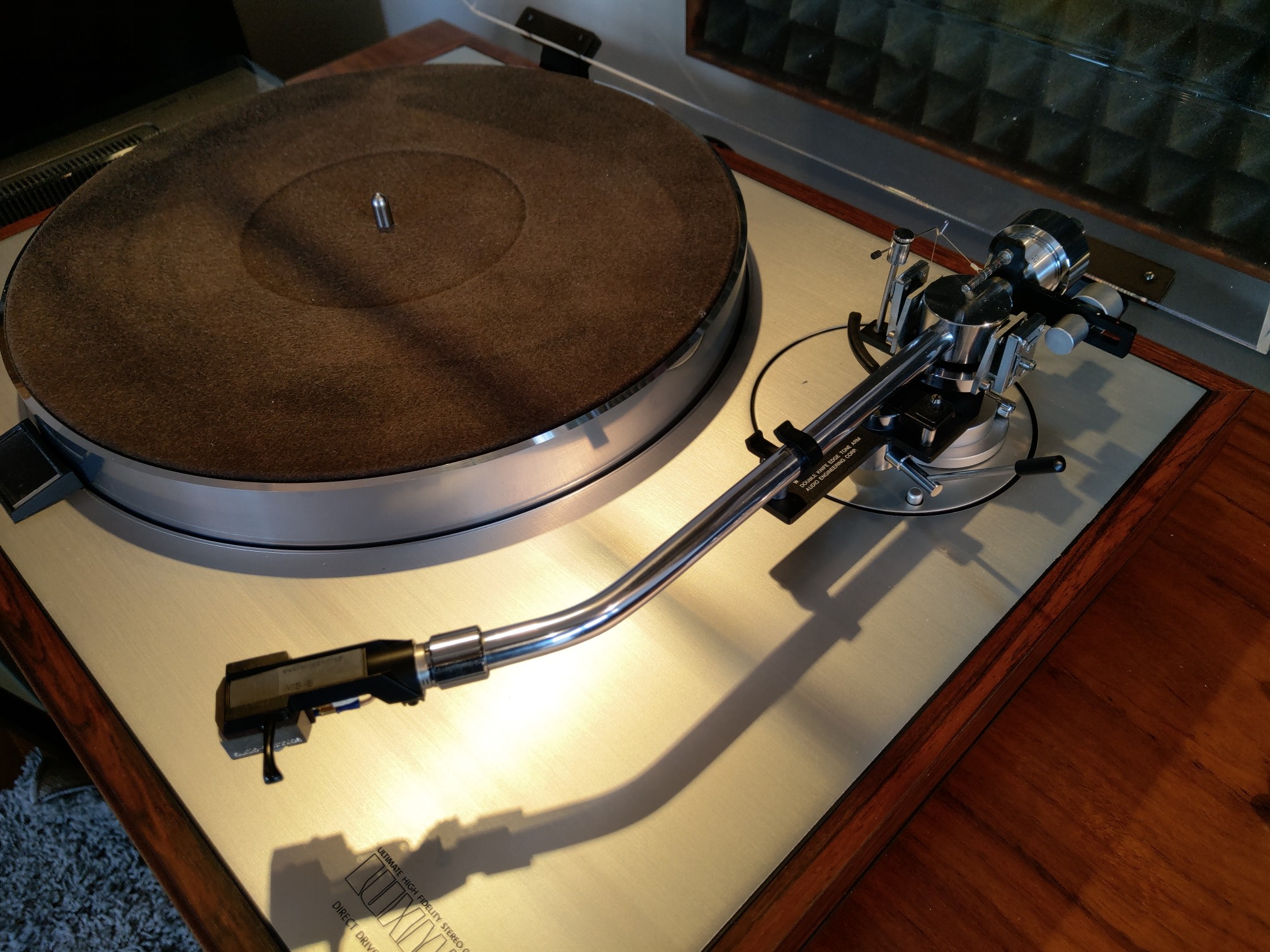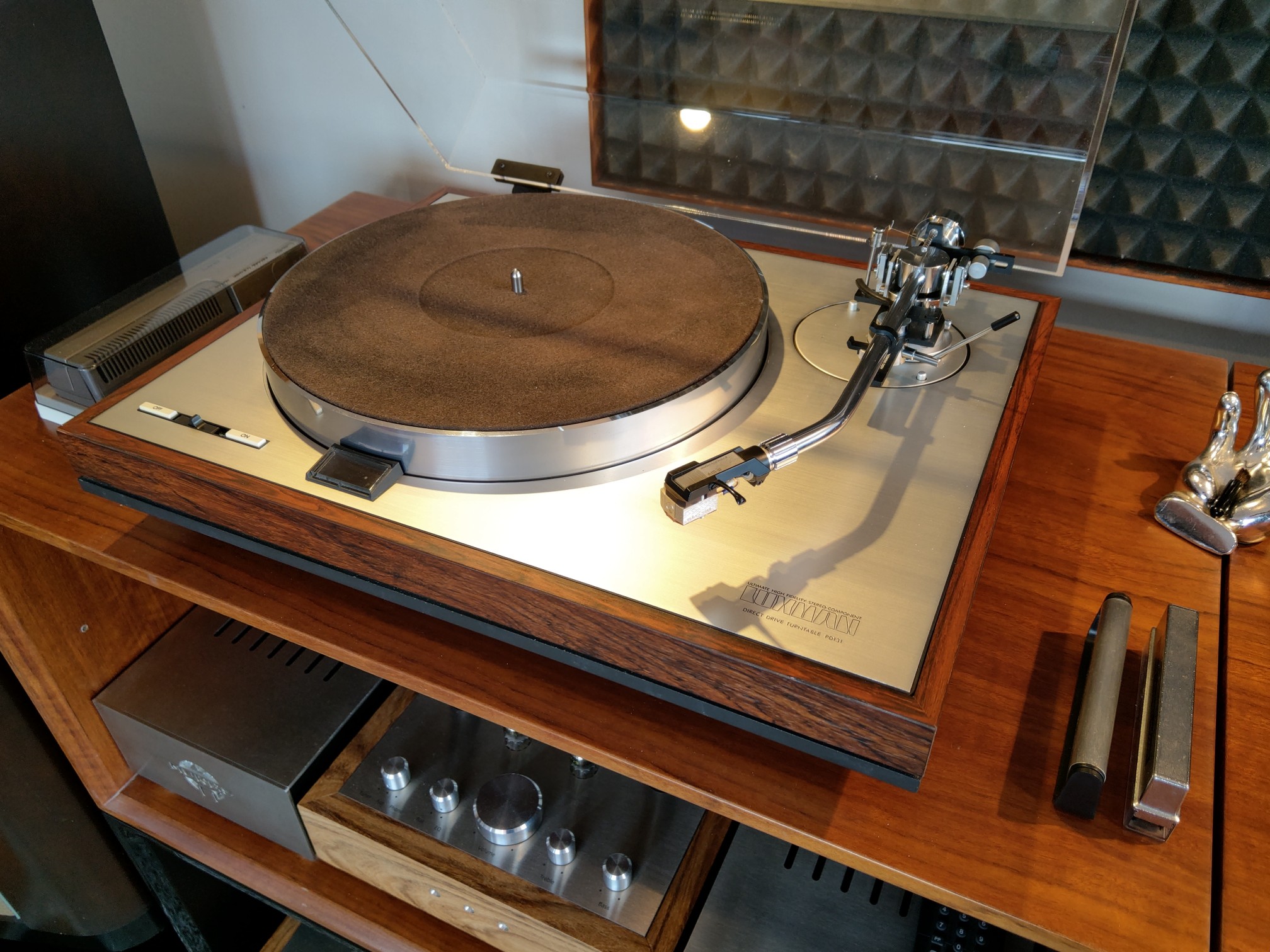 Znowu z wielkim żalem rozstaję się z Luxmanem PD 131. Serię PD 121 i 131 darzę ogromnym sentymentem i za każdym razem powtarzam sobie, że powinienem zostawić sobie jeden egzemplarz. Tym razem nowy właściciel dokonał świetnego wyboru łącząc Luxmana z przepięknym ramieniem SAEC WE 317. Wygląda to tak a do tego jak gra