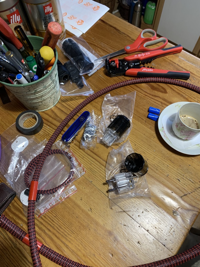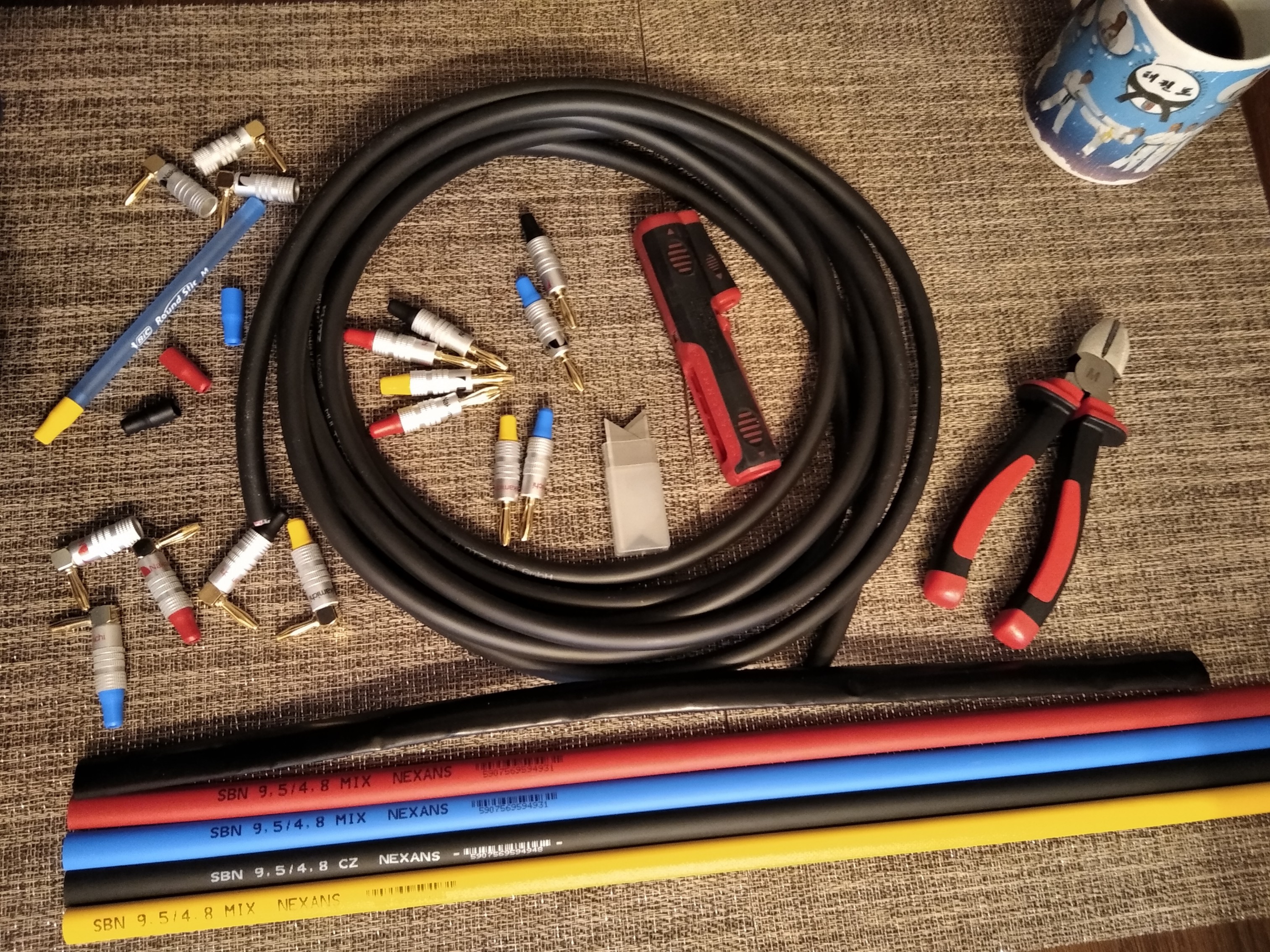 Skupiłem się na 1 zdjęciu, bo prawie cała kawa wypita a tu tylko przycięty oplot, wyjęte wtyczki i przycięte termokurczki.