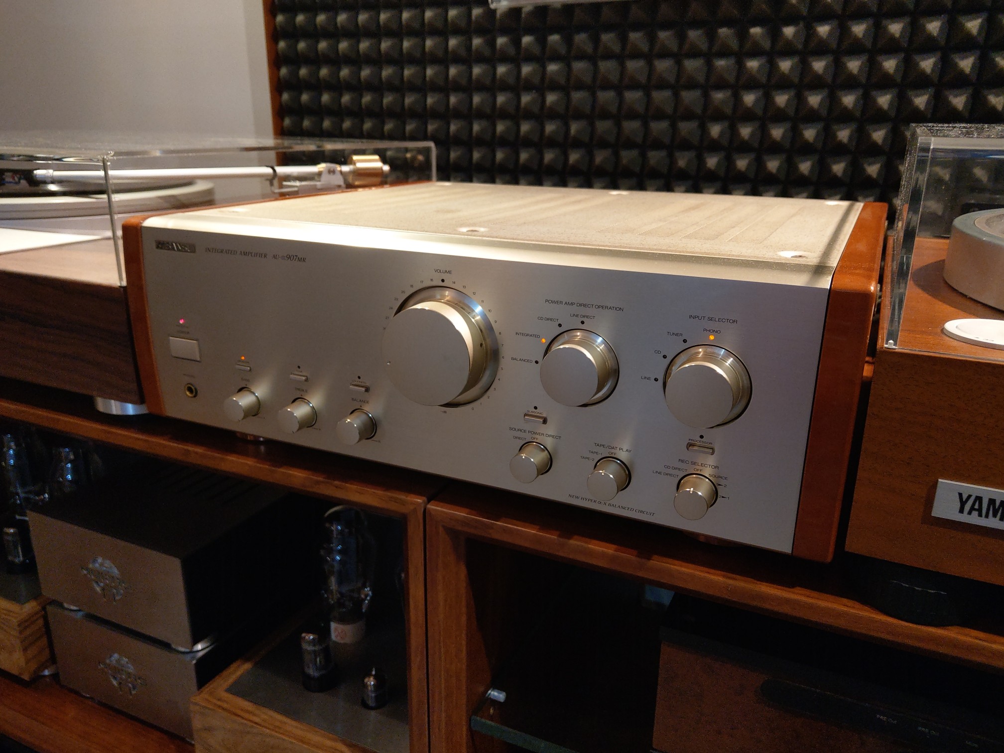 Chciałbym przedstawić nowy nabytek. Skromnie ale bardzo szlachetnie wyglądający wzmacniacz Sansui au 907 w wersji MR. Wykonanie perfekcyjne i muszę przyznać, że gra wyśmienicie. Gra tak jak wygląda i waży - 33 kg. Warto go dźwigać :D