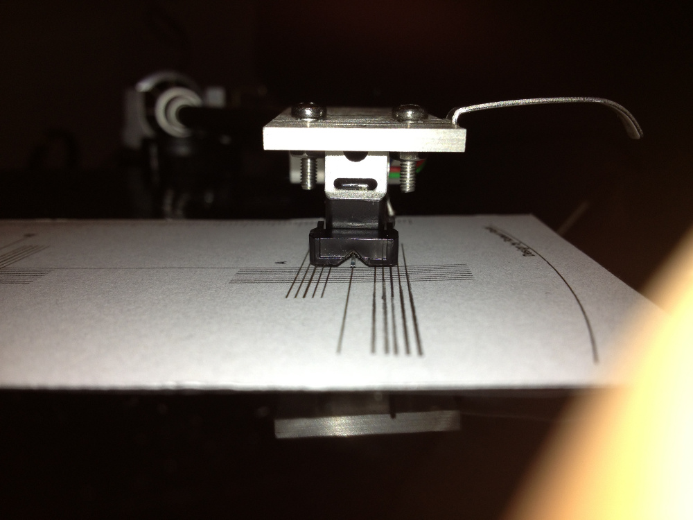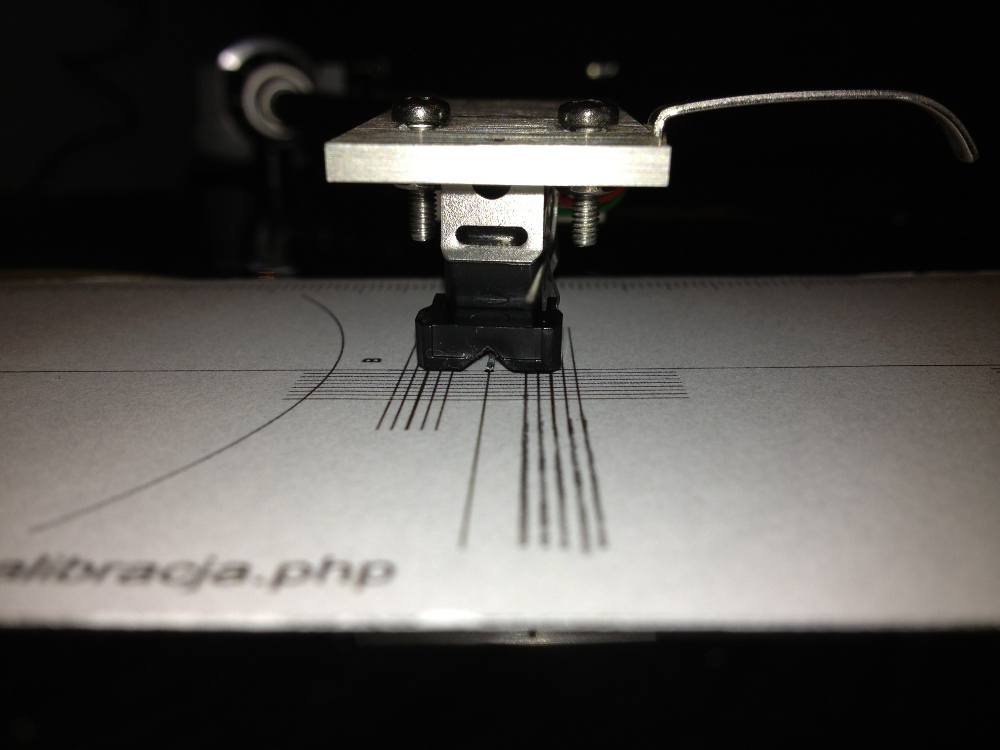 z wyznaczonym punktem. Ja zrobiłem to za pomocą standardowego adaptera, wyznaczyłem 11mm ustawiłem wkładkę w osi headshell-a i dopasowałem do punktu na adapterze no i co? no gra ale czy jest to optymalne czy nie to nie wiem. Może 14mm było by lepiej, wiadomo lepsze jest wrogiem dobrego