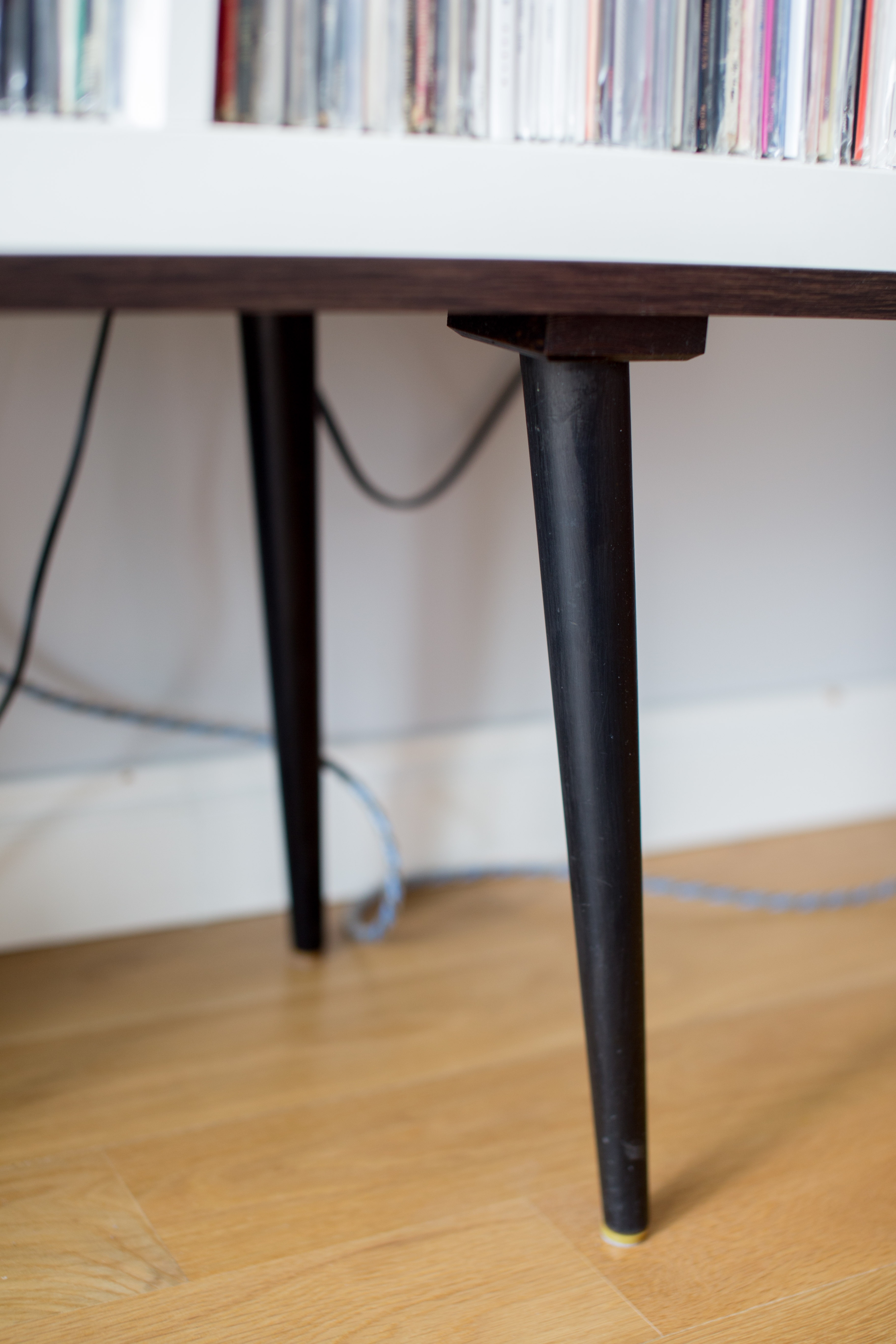Oryginalny biały Kallax został obudowany płytą z brązowym laminatem.