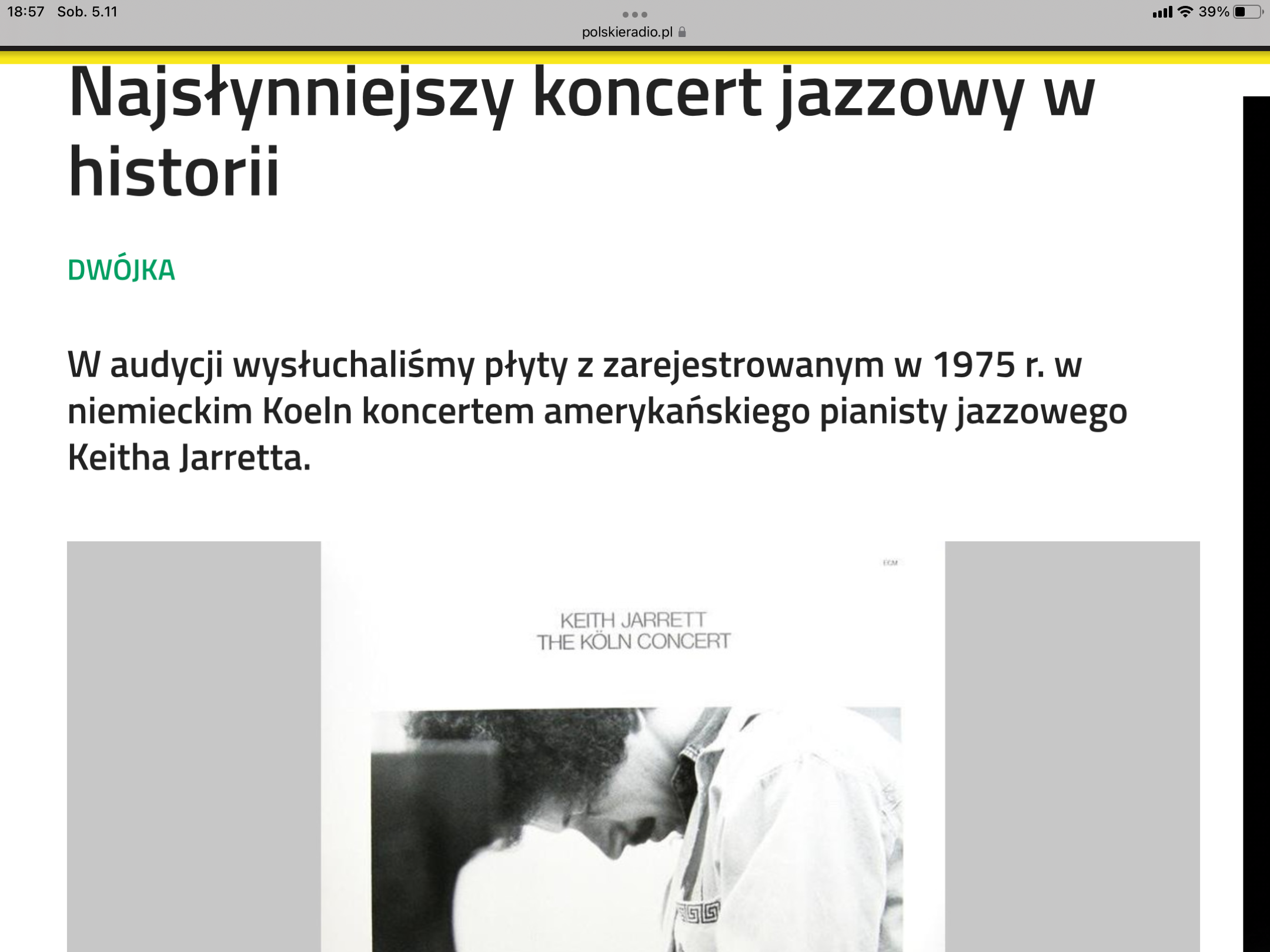 O tym koncercie jarretta było w wieczorze płytowym.