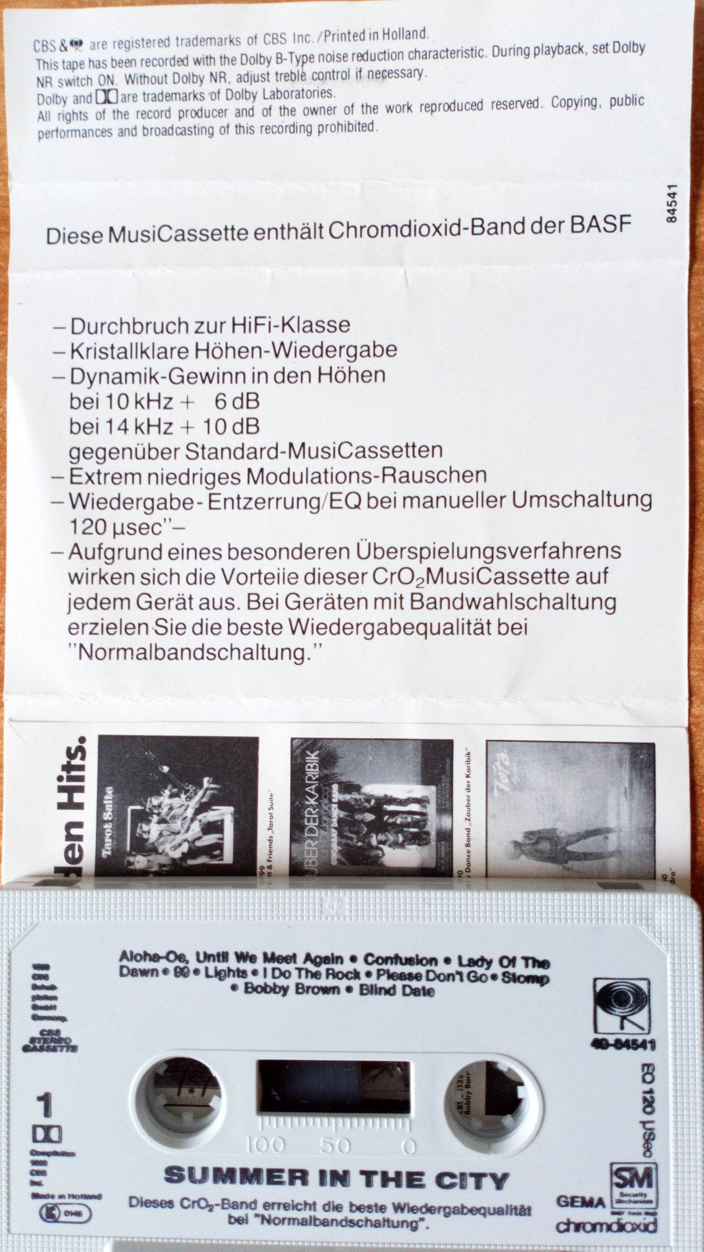 V/A - Summer In The City. CBS w roku 1980 dawało szerszą informację na temat chromowego nośnika. Pięć lat później został już tylko napis chrome tape na grzbiecie wkładki i oznaczenie na naklejce.