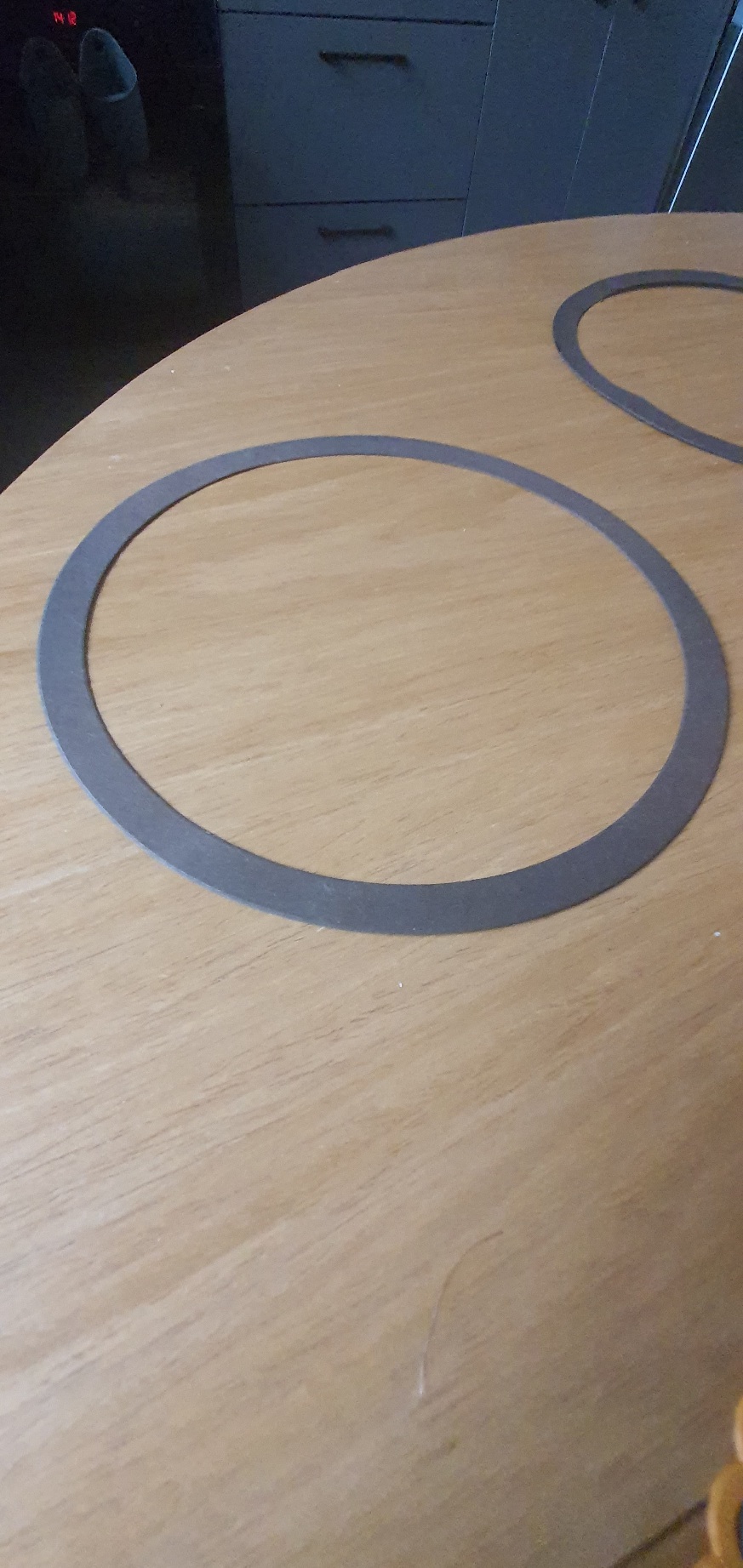 Patrząc na fotografie i sugerując się twoim opisem myślę, że to może być preszpan, na pewno można go znaleść w różnych grubościach i wielkościach i jakoś dociąć - jest dość twardy.