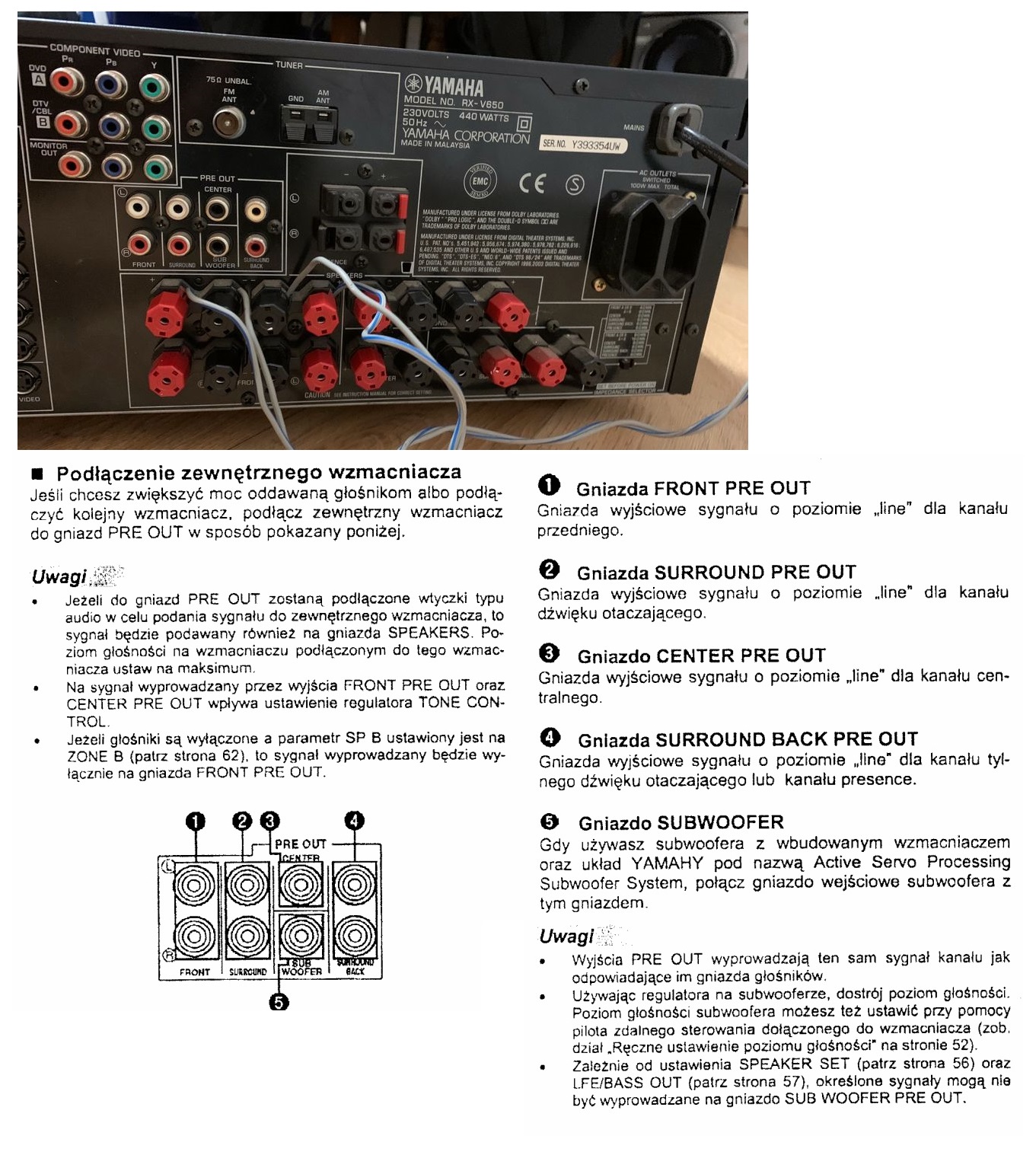 Opis z instrukcji amplitunera.