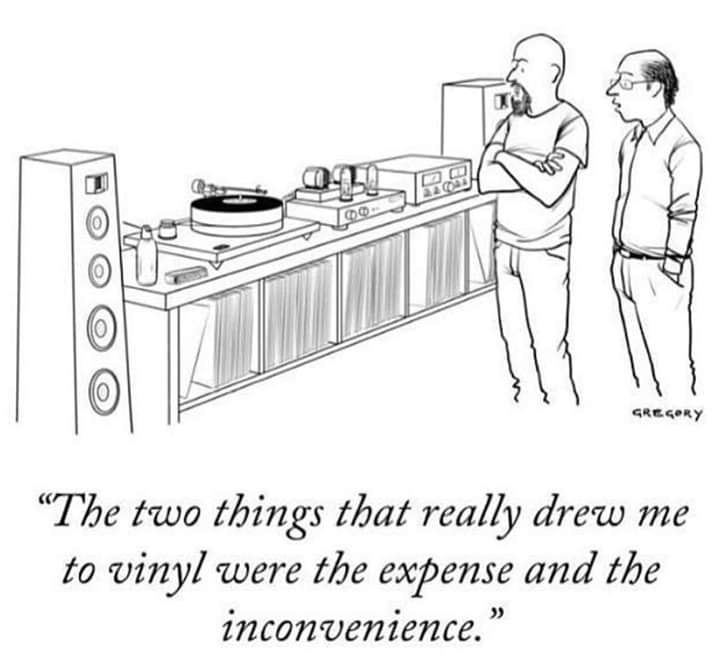 W wolnym tłumaczeniu. "Dwie rzeczy które mocno przyciągnęły mnie do winyli to wysoki koszt i niewygoda"