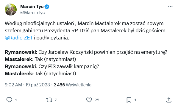 Tak. To w zasadzie dawna linia krytyki. On był krytyczny wobec PIS i dawniej. Trochę oszołom, zatem do Pałacu pasuje jak ulał.