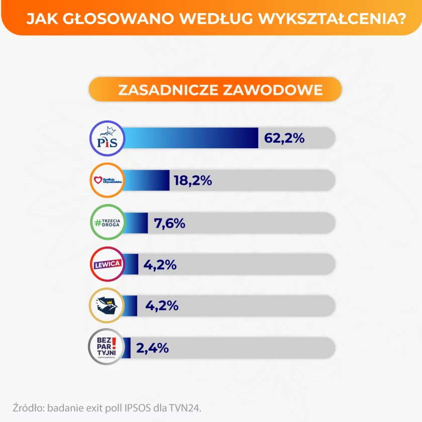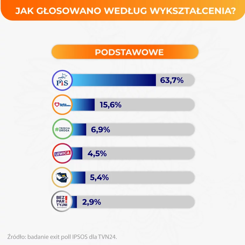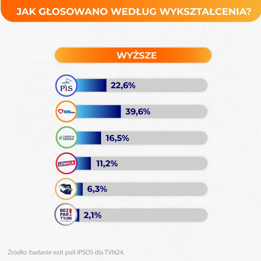 @domibobi Ale patrząc na ten rozkład to na forum też powinni być ludzie z wyższym wykształceniem, którzy nie głosowali na PO, TD czy Lewicę. Boją się ujawnić?