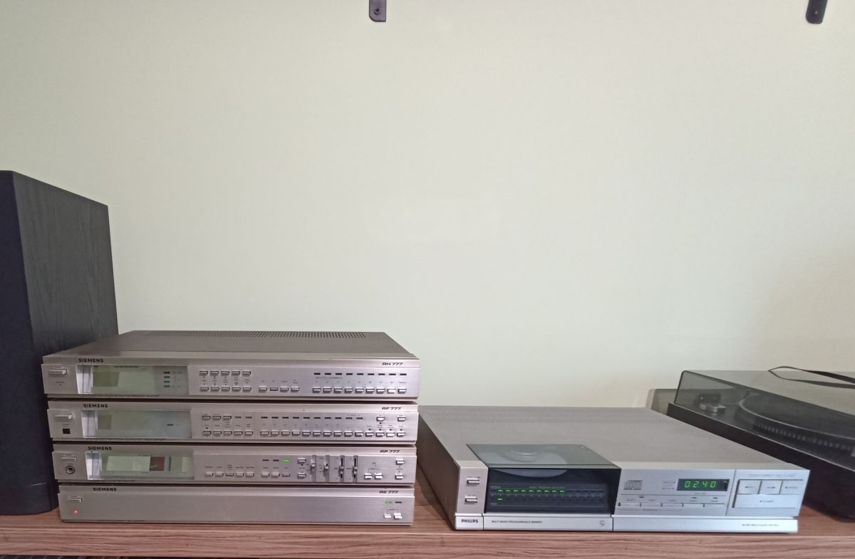 Podobno nie było mnie tu od 2019 roku..... No to czas coś napisać i nadrobić.... W temacie sprzętu kupiłem zestaw numer 2. Będzie służył do słuchania radia i płyt CD. Co prawda ma wejście RIAA - MM oraz MC, tylko że DIN, a mój gramofon ma RCA.... Gramofon dalej będzie z Revoxem. Zestaw Siemens serii 777. Wtedy najwyższa wieża producenta. Od góry - tuner radiowy, zegar, przedwzmacniacz, wzmacniacz. Był do kompletu jeszcze deck kasetowy 3 głowicowy i gramofon oraz pilot do sterowania całością. Pilota niestety nie mam.....