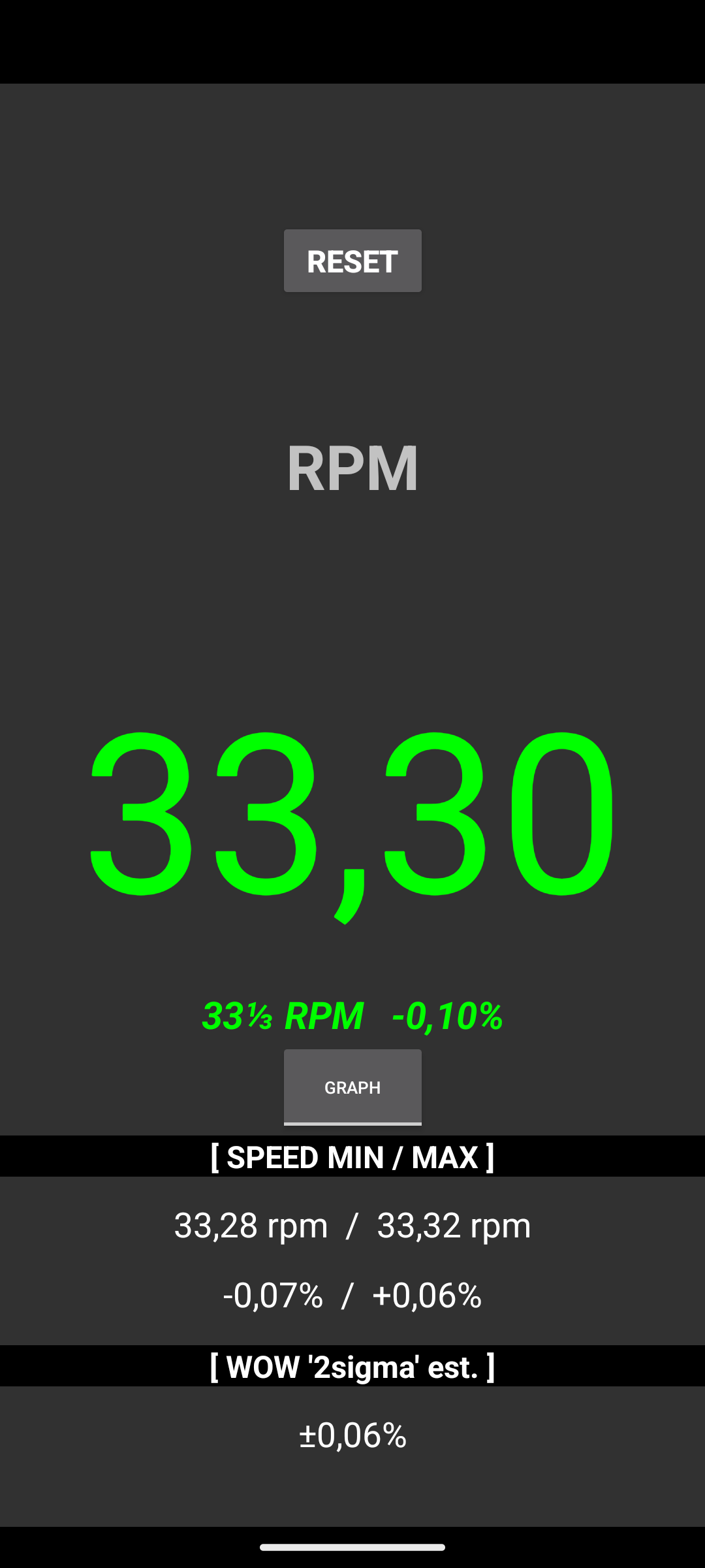 Zaś co do samej aplikacji, pomiaru i telefonu... Nie wiem jak na innych, ale na Samsungu serii A i drugim, serii S22 pomiary są powtarzalne. Trzeba tylko robić je z głową i pamiętać o paru drobiazgach, np. aby położyć telefon dokładnie w płaszczyźnie, centralnie na talerzu (ja wydrukowałem sobie podkładkę na szpindel) ale można i domowymi sposobami. Ważne by wyważenia talerza zauważalnie nie zmieniać. Obroty porównywałem z zewnętrznym urządzeniem działającym w oparciu o stroboskop.