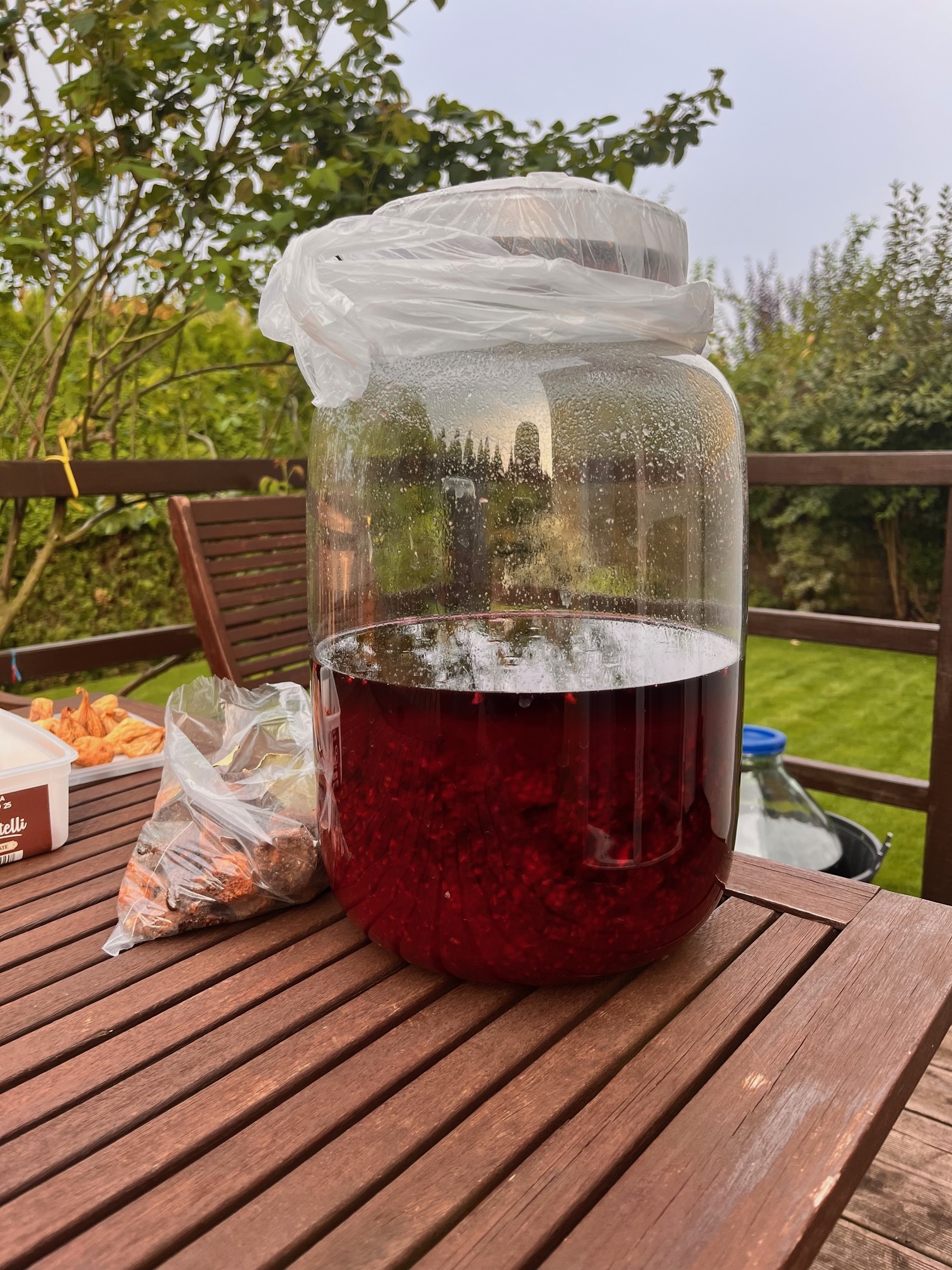 6) no i na koniec spécialité de la maison - wiśniówka z rewelacyjnej odrostówki nadwiślanki (a w mniejszym słoju kilogram jeżyn przesypanych cukrem, za dwa dni trafią do słoja z czwartego zdjęcia wraz z litrem czynnika zasadniczego):
