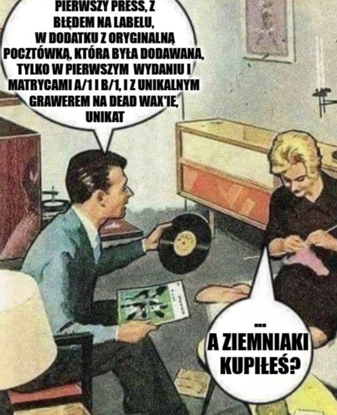 W tamtych czasach kupowanie płyt było jak kupowanie ziemniaków. Nikt nie przywiązywał wagi do first pressów, pocztówek i grawerów. No może poza garstką nawiedzonych kolekcjonerów ;)