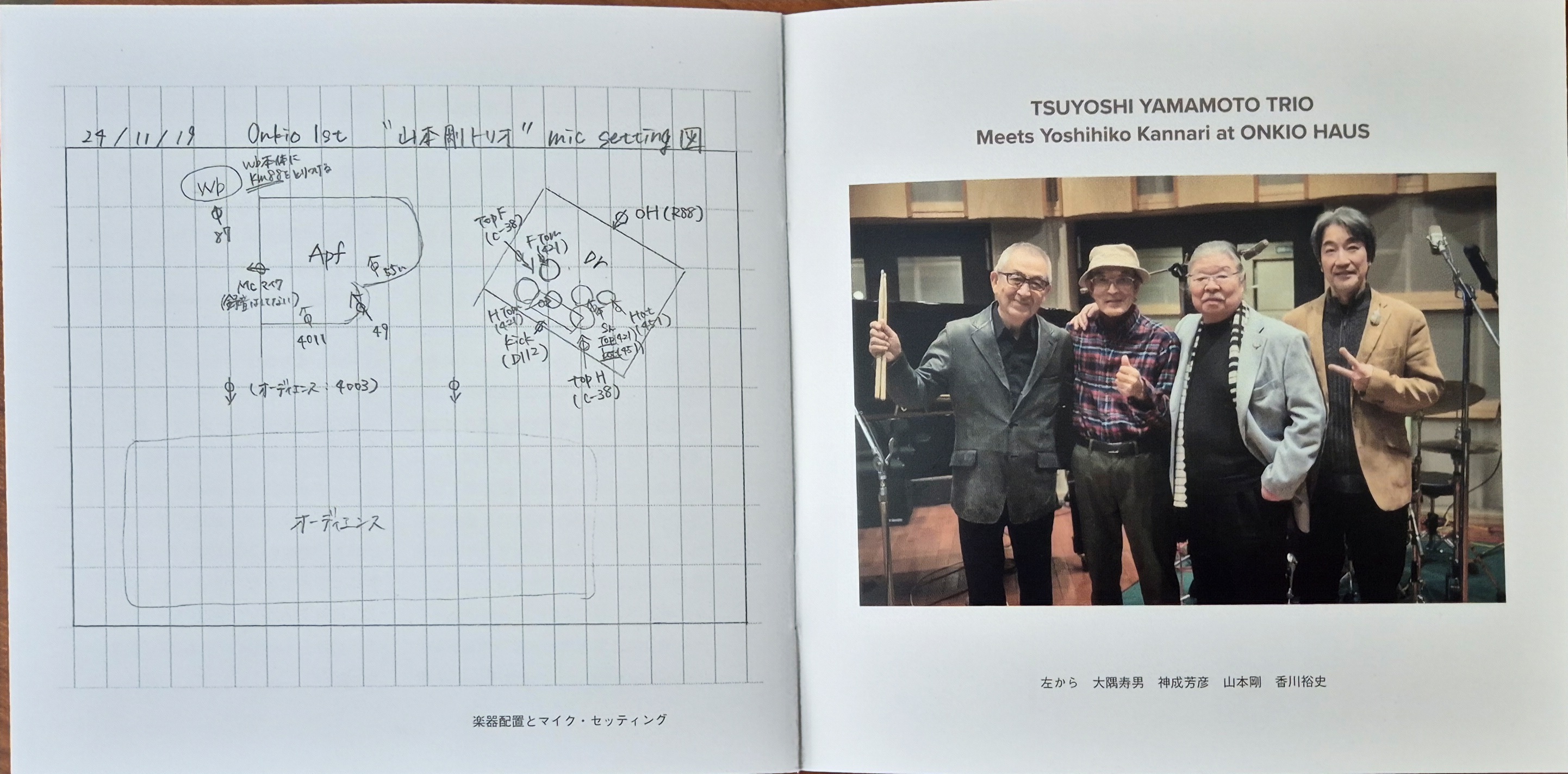 Tak samo jak w starych albumach TBM jest szkic rozmieszczenia instrumentów i mikrofonów w studiu.