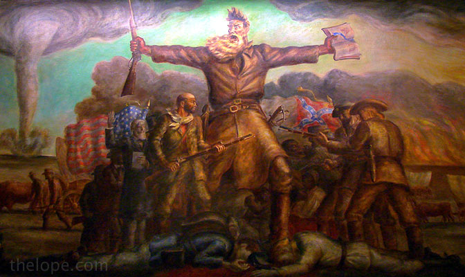 Jeszcze jeden obraz wykorzystany na okładce albumu Kansas. Tym razem na debiucie Kansasu zreprodukowany został obraz (fresk) Johna Steuarta Curry'ego zatytułowany "Tragic Prelude".