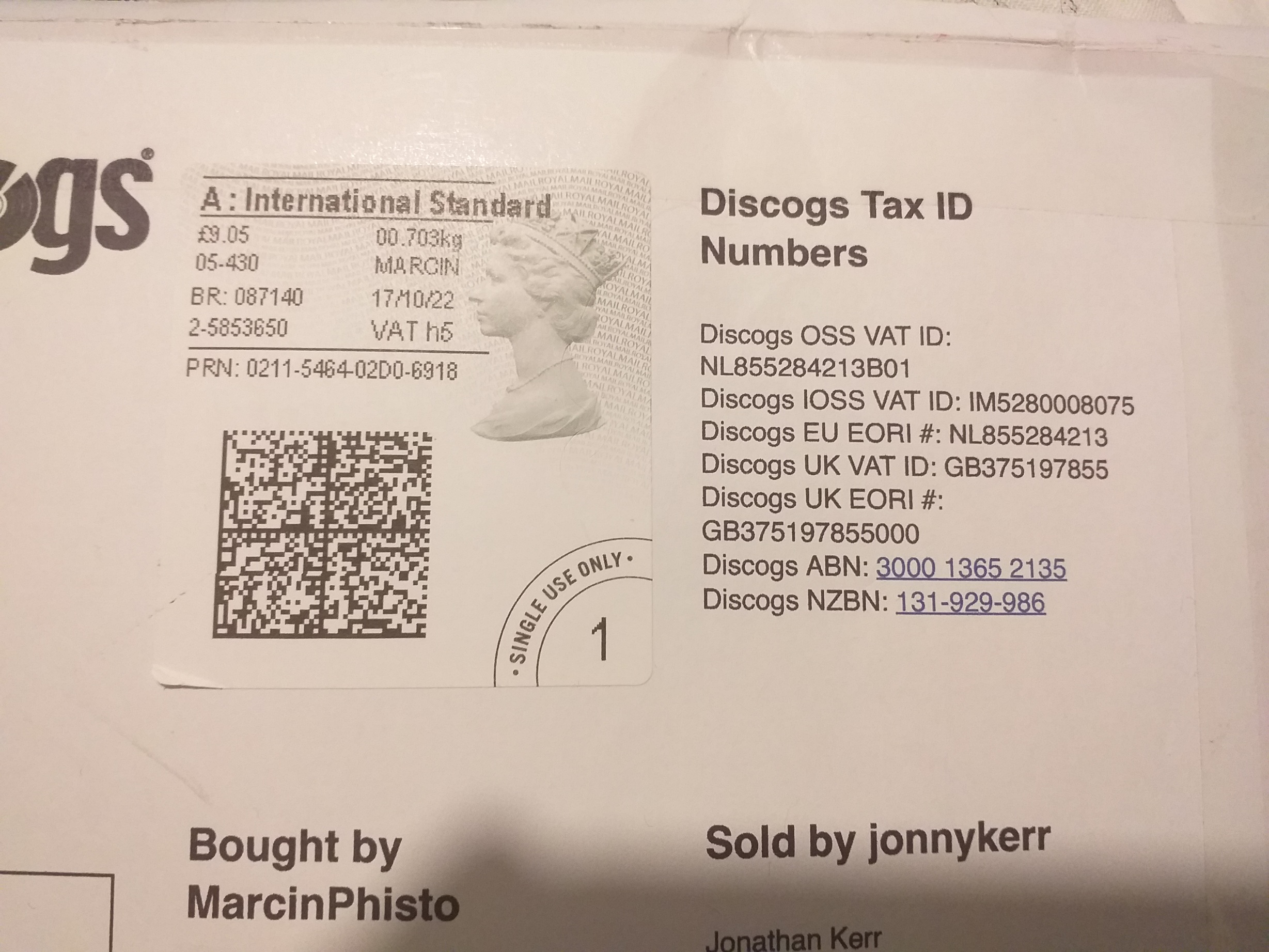 IOSS to system dla płatniķów VAT, otrzymujesz numer, który jest umieszczony na przesyłce. Sklep U2 ma od razu numer nadrukowany i znaczek IOSS. Wtedy właśnie mają jasną informacje, że VAT został już opłacony. I jest taka faktura naklejona z wyszczególnieniem ile płyta ile VAT ile wysyłka.