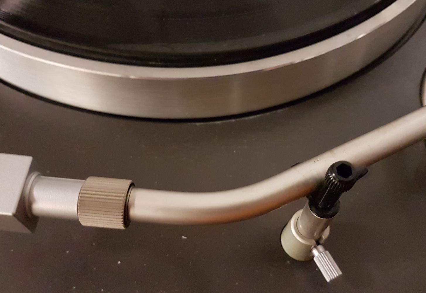 Pojawił się również problem przesuwu ramienia, który choć tego nie czuć miał niewielki opór. Na pierwszej płycie przeskakiwał już na rozbiegówce, a po paru w zasadzie już tylko na końcu ścieżek. Też nie ma co ukrywać. Ramię powinno być zdemontowane, przeczyszczone i przesmarowane. Zamiast tego wykonałem ręczny zabieg rehabilitacyjny który rozgrzał i lepiej rozprowadził oryginalny smar. Zapętliłem go na dużym, pustym końcu płyty repeatem i ustawieniem autostartu na 7". Godzinny test potwierdził.