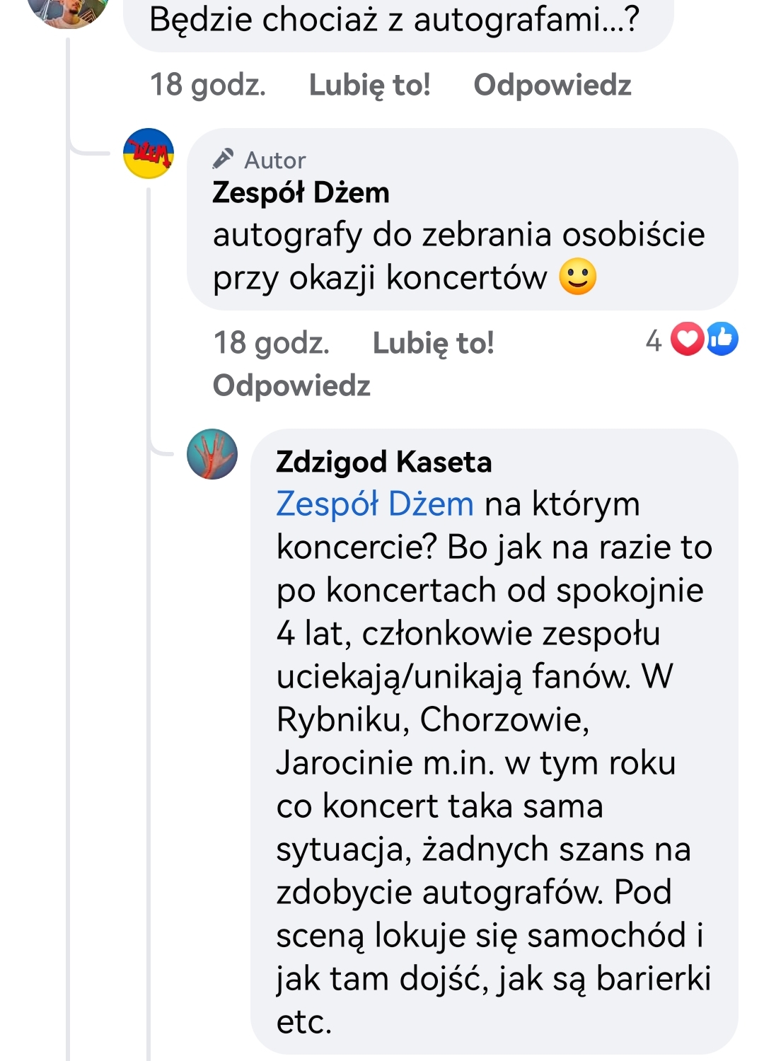 Ciekawy wątek się wywiązał na FB Dżemu co do autografów po koncercie :)