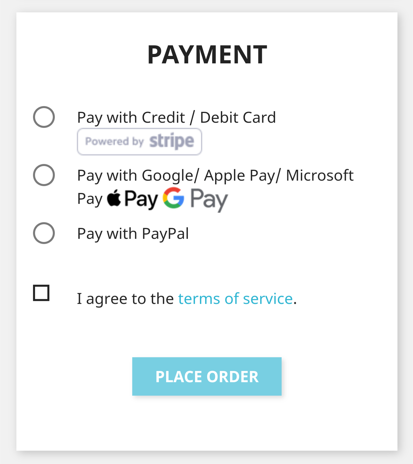 Jest kilka metod płatności, w tym zwykła karta bankowa.