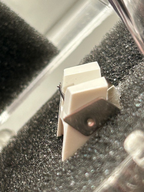 Jak już wszystko miałem na chacie (dłuuuga droga) i zacząłem rozpakowywać/ oglądać , zauważyłem, że jedna z igieł (1200) trochę odstaje od reszty- bardziej “siedzi”. Być może coś nie pykło w kontroli produkcji, może to nic, ale…na moje oko coś jest nie tegez. Zarzuciłem ją na wkładkę żeby sprawdzić czy to gra, generalnie nie ma różnicy jak porównałem z inną igłą jeśli chodzi o brzmienie, natomiast siedzi niżej. Jak to wygląda w praktyce, postarałem się uchwycić na foto (porównanie z innymi igłami, foto jak jest zamontowana akurat na Technics SL-Q33, więc wysokością ramienia nic nie regulowałem, w 1600mk2 jeszcze mógłbym kombinować z ramieniem). Tak czy siak, trochę ją pomęczyłem i trafiła z powrotem do pudełka. Szukając info w necie nie trafiłem jakoby LP Gear borykało się z reklamacjami do tych igieł, a na wielu zdjęciach z tą wkładką faktycznie siedzi ona nisko…Mając “na magazynie” inne igły do tej przefajnej wkładki, pomyślałem że może znajdzie się chętny co nie boi się latać nisko.