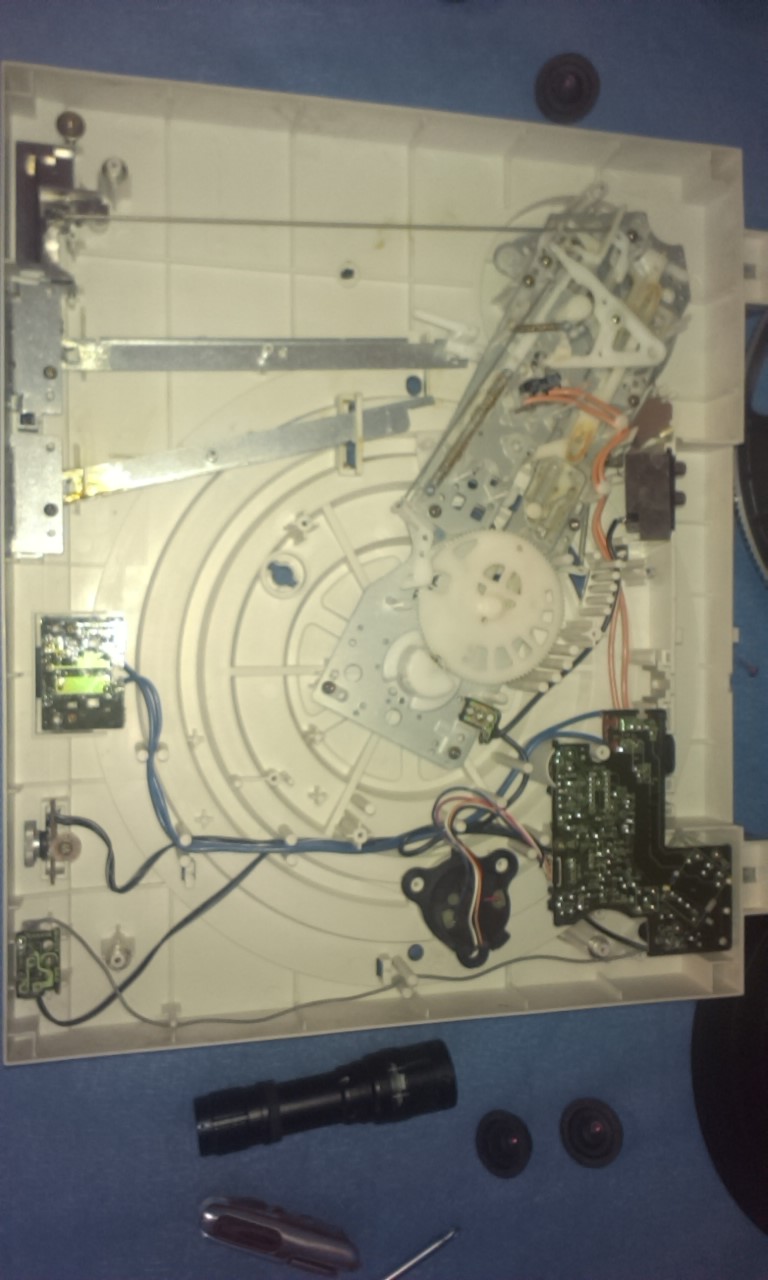 Mam zagadkę...złożyłem go do kupy, położyłem talerz, zakręciłem nim ręką i cichutko, włączyłem gramofon i znowu hałasuje czy włączony czy nie. Nadal nie wiem gdzie naoliwić, nigdzie nie znalazłem informacji na ten temat. W niektórych modelach po uniesieniu szpuli trochę do góry ukazuje się szczelina przez która można kapnąć olej a tu nic takiego nie ma więc nie wiem.