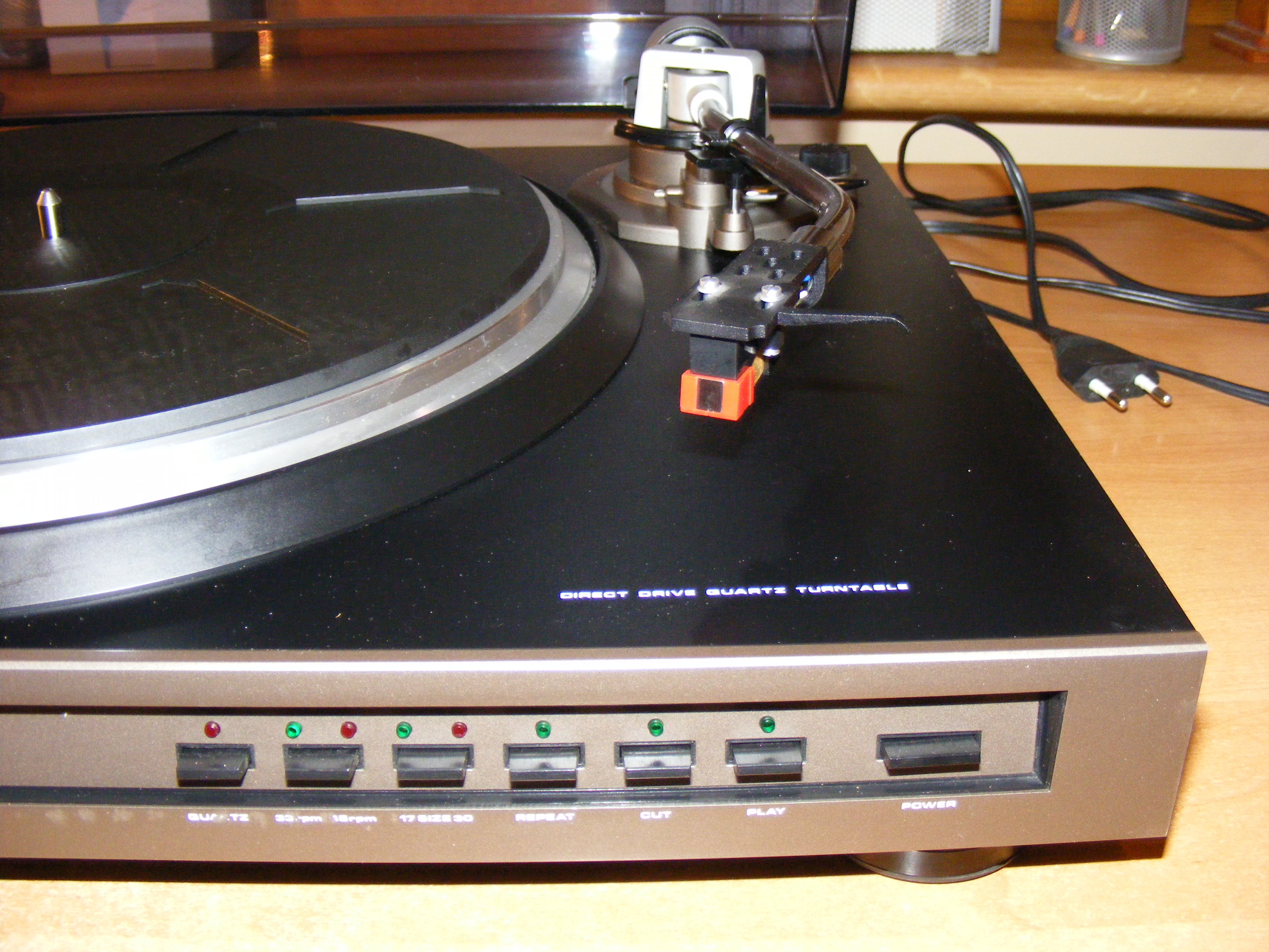 Nie mam się do czego przyczepić ani do stanu wizualnego, ani do działania. Pokrywa ma tylko powierzchniowe ryski a jedyną skazą wizualną są lekko zamazane napisy przy dwóch pierwszych przyciskach. Wszystkie funkcje działają prawidłowo, gramofon trzyma obroty. Nawet igła po wyczyszczeniu nadaje się do rozruchowego odsłuchu. Żadnych luzów w łożyskowaniu ramienia ani na osi silnika. Przyczepić się można jedynie do zbyt szybko opadającej windy, ale co ciekawe jest tak tylko przy obsłudze manualnej - automatyka opuszcza ją i podnosi płynnie, choć jak na mój gust mogłaby jeszcze trochę wolniej. Nie wiem czy ten typ tak ma, czy trzeba coś poprawić przy manualnej obsłudze windy.